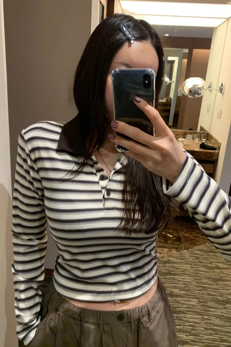 條文polo領上衣(好喜歡這款做有點短板設計)