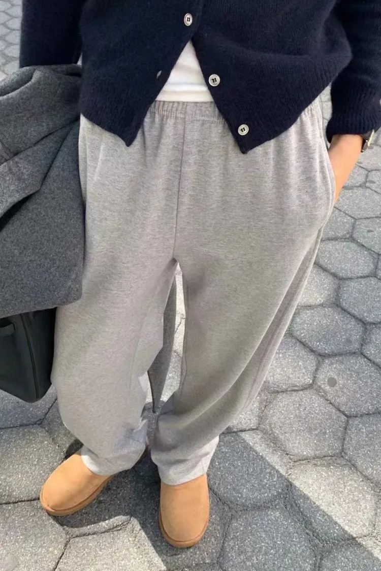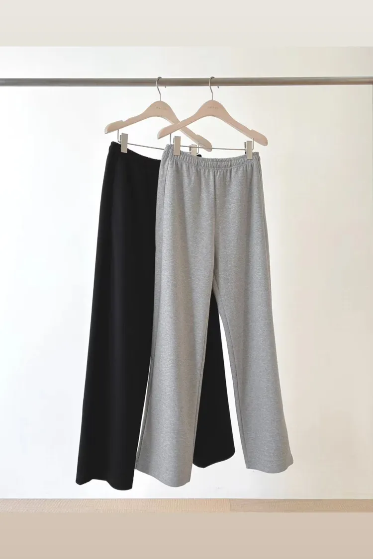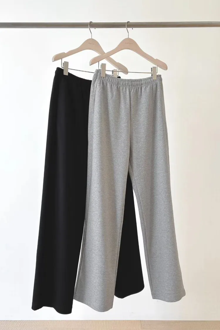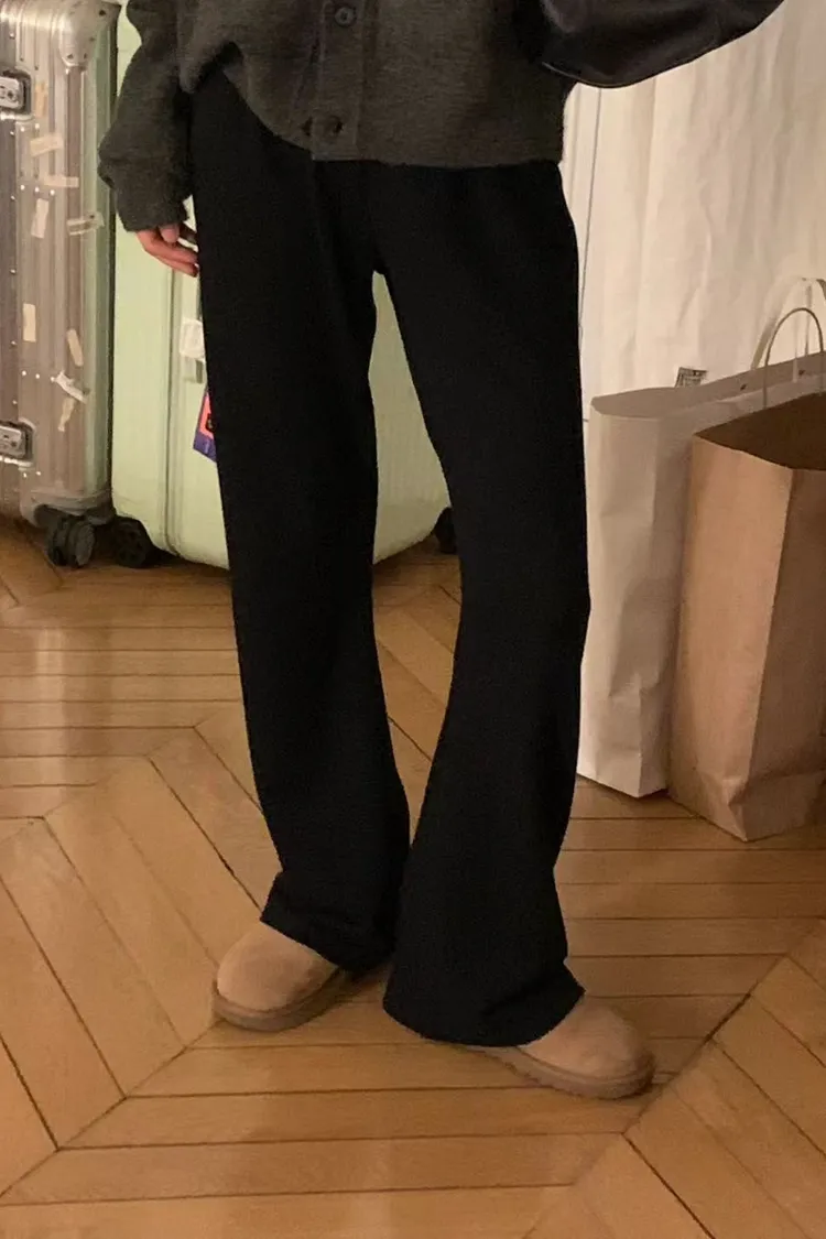 OUNCE 鬆緊腰超彈力小喇黑長褲