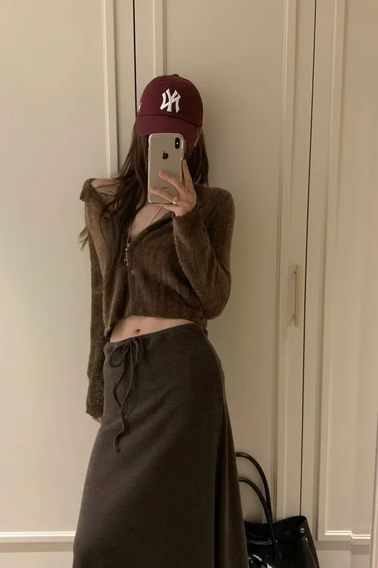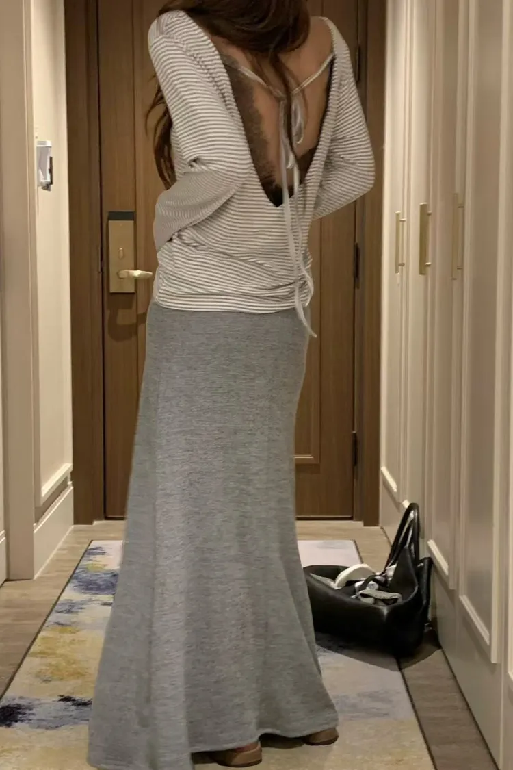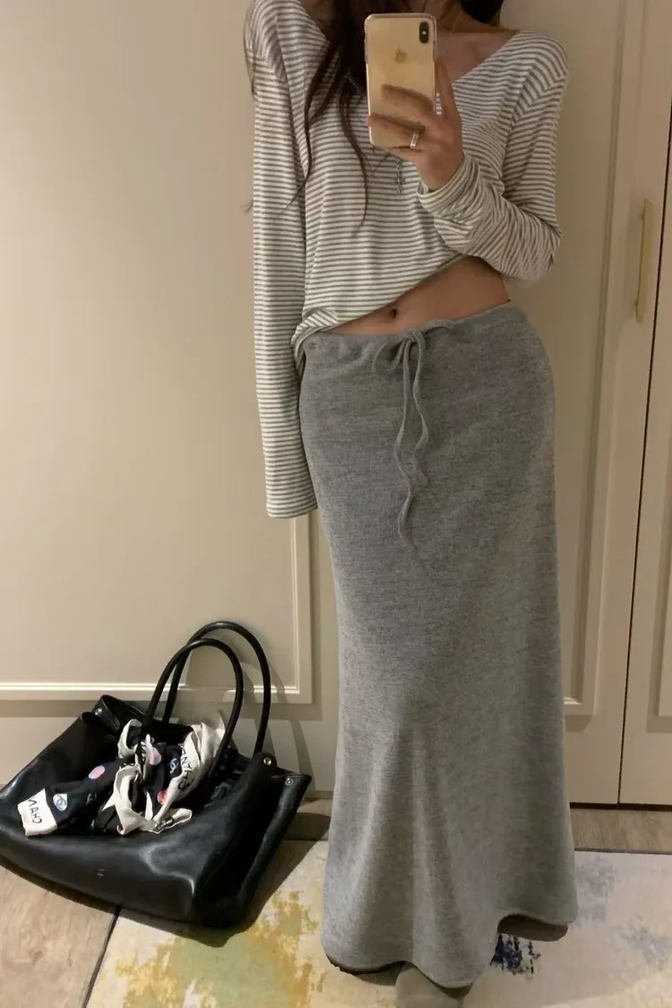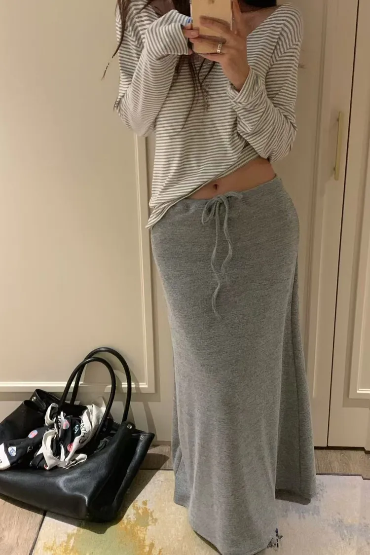 針織綁腰棉長裙