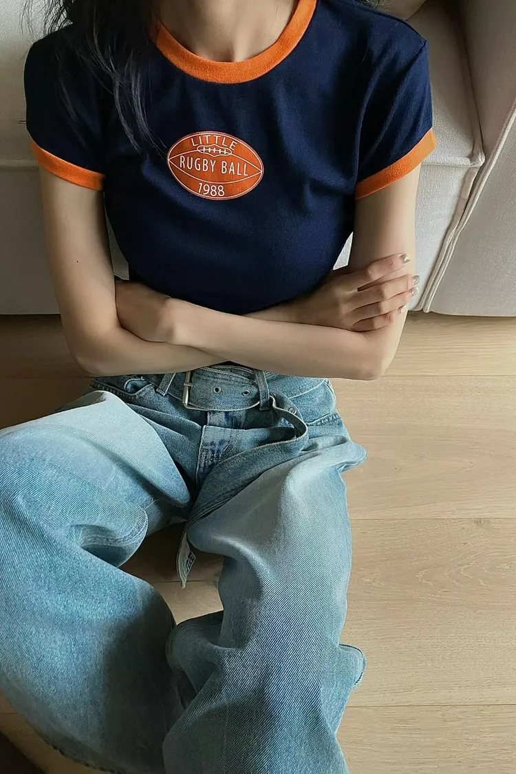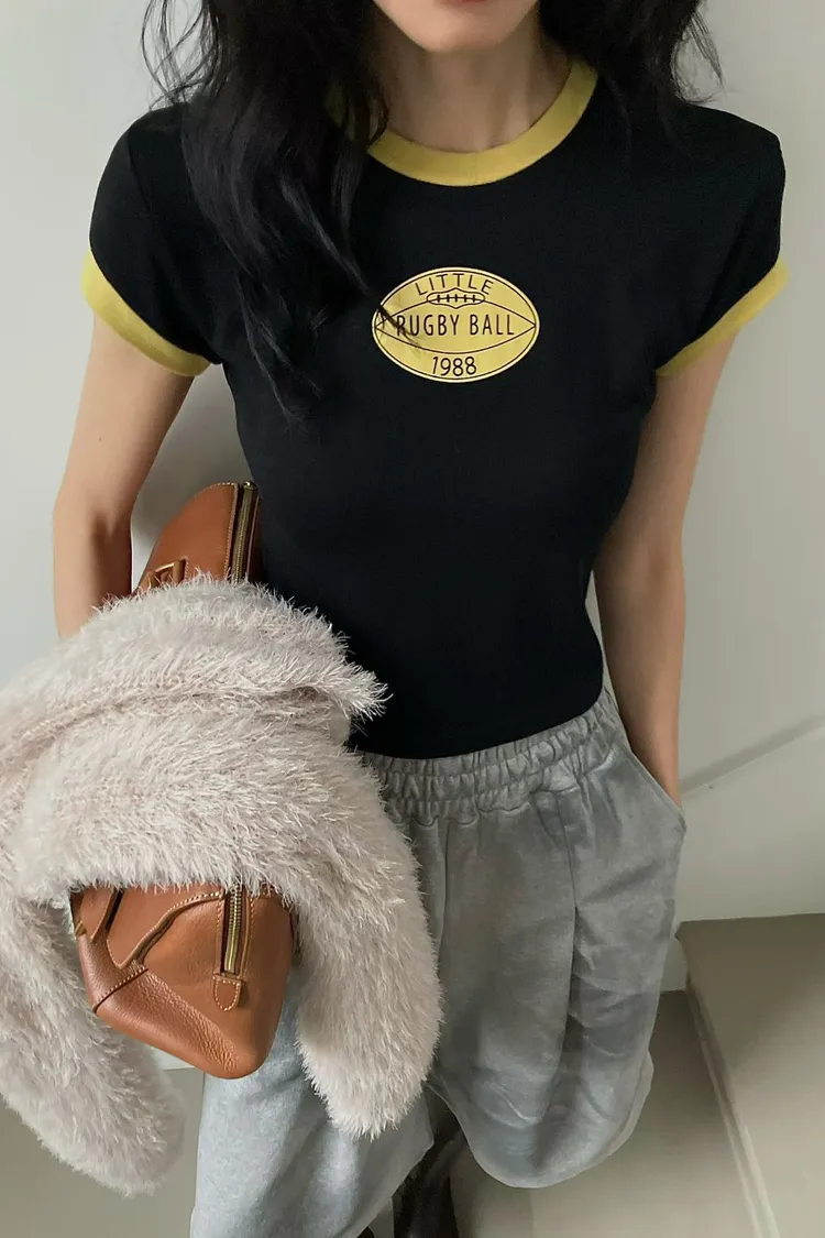 撞色滾邊短tee