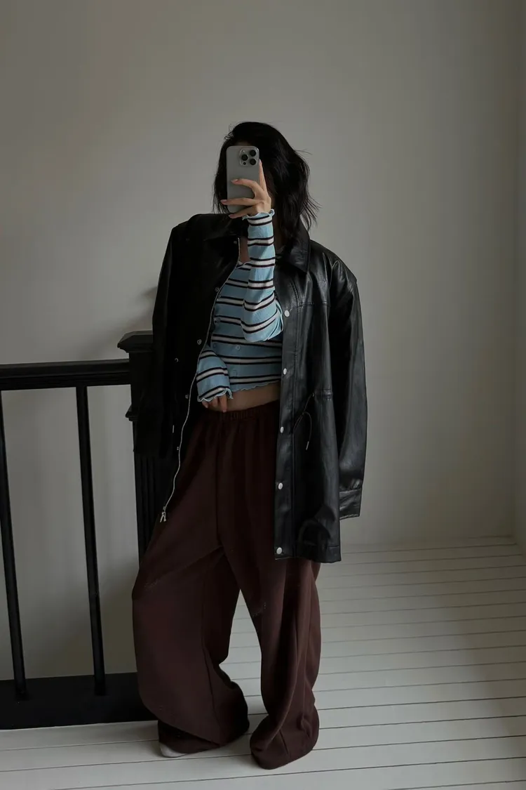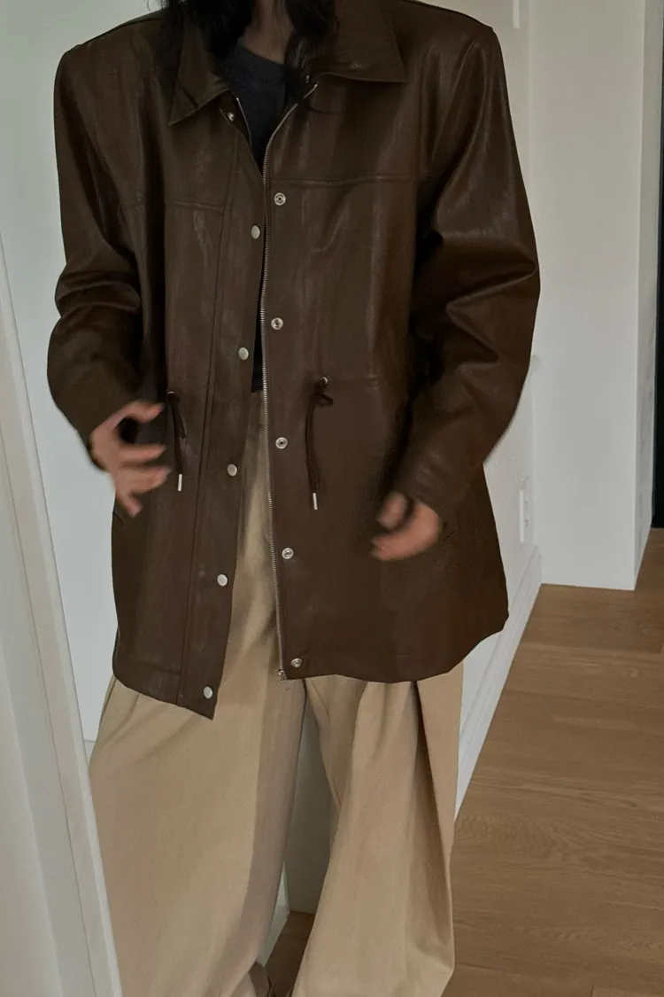 抽繩中長版皮外套