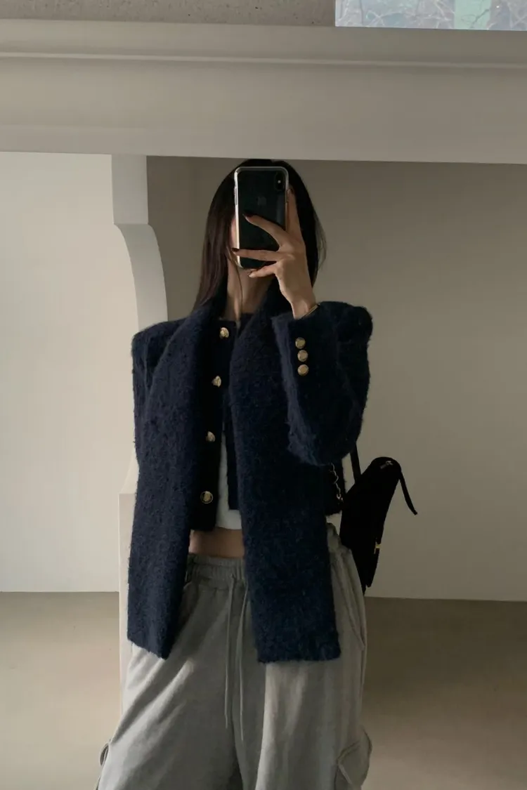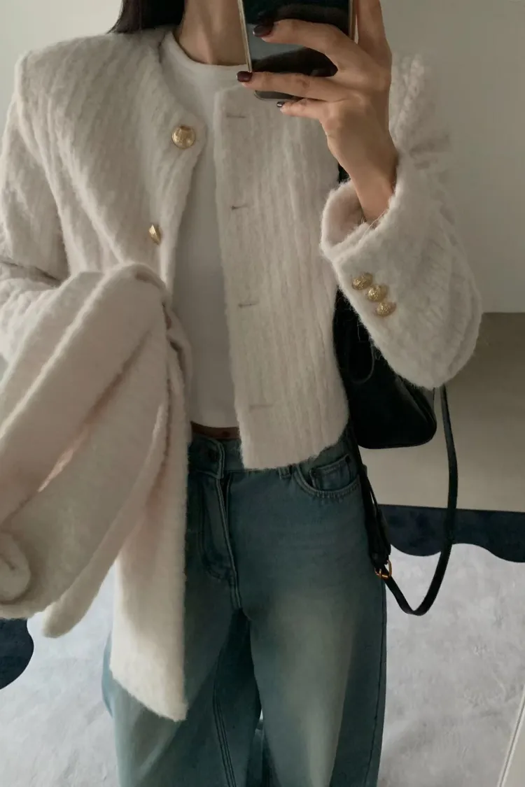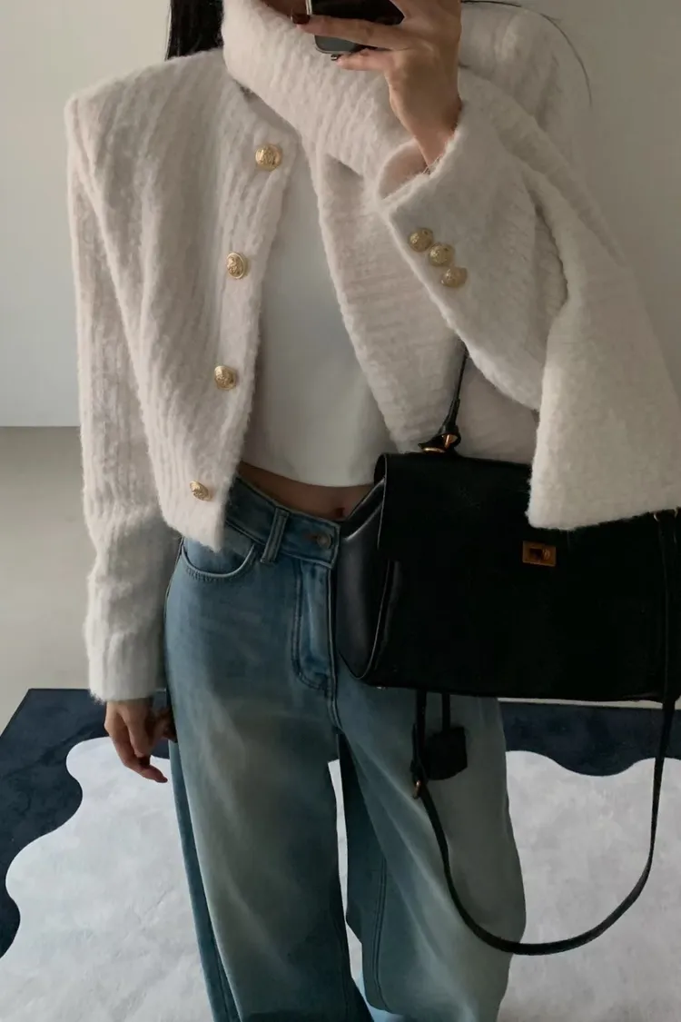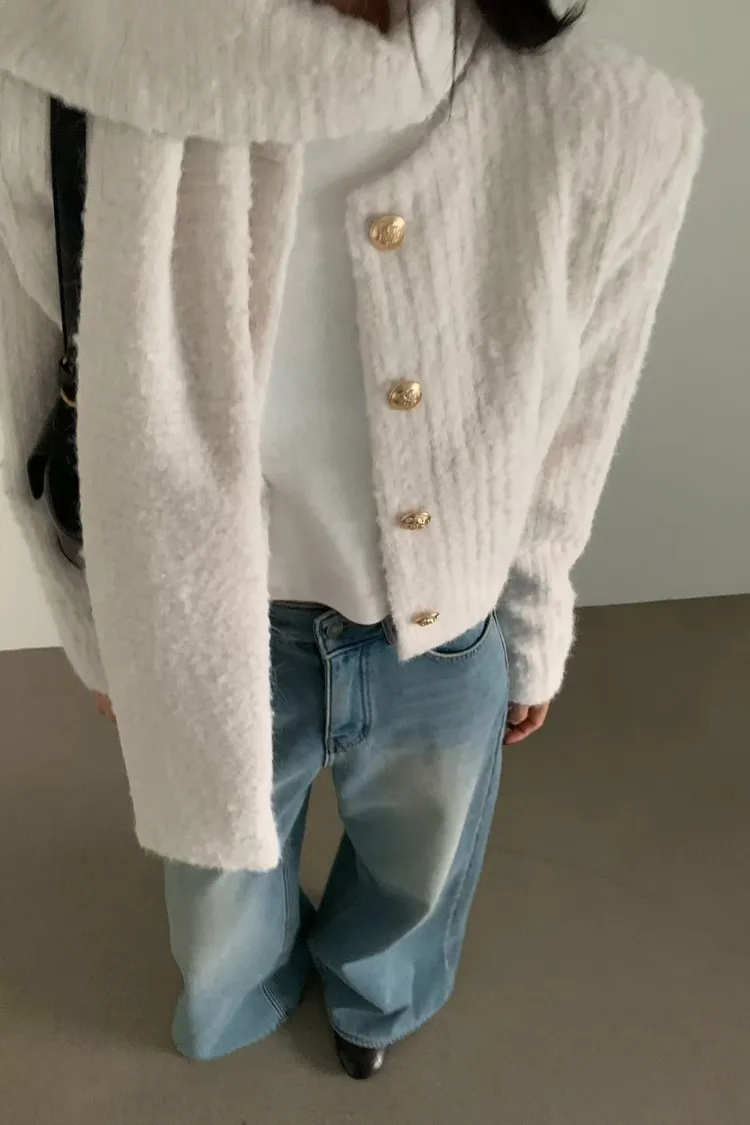 毛毛小香外套+圍巾(SET)