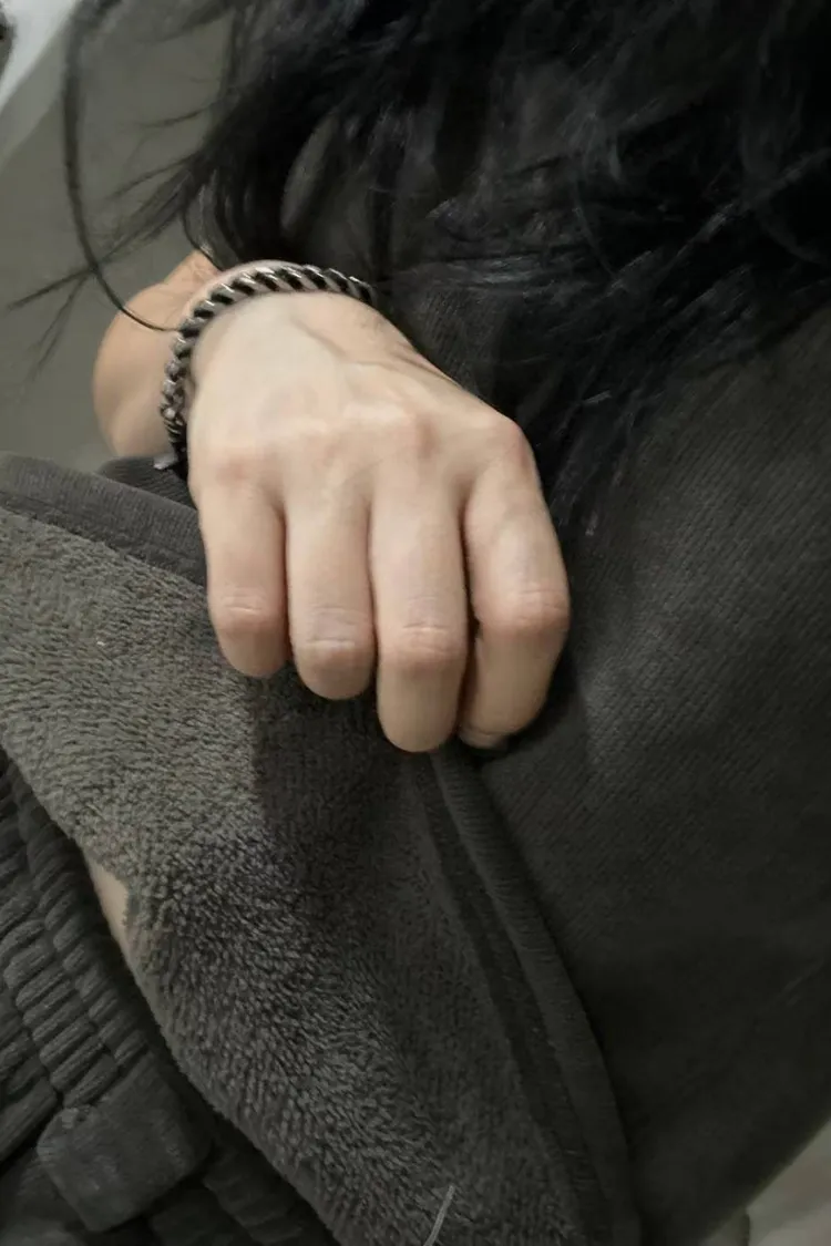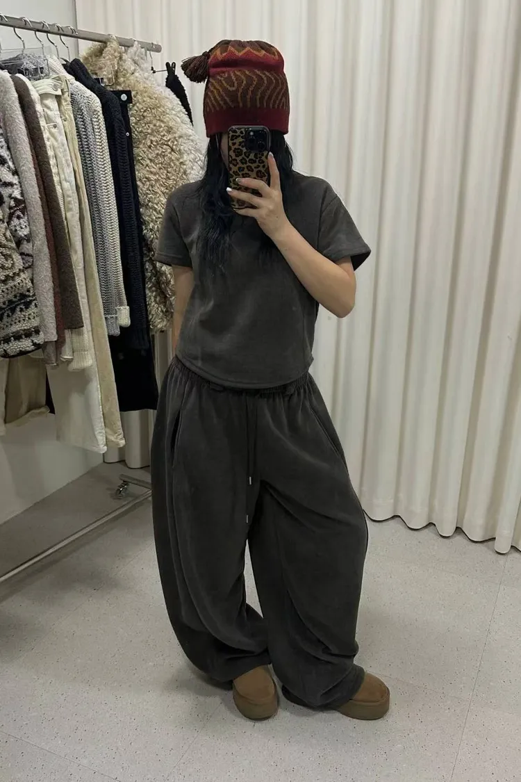 內刷毛側邊帶有點不規則的素面上衣