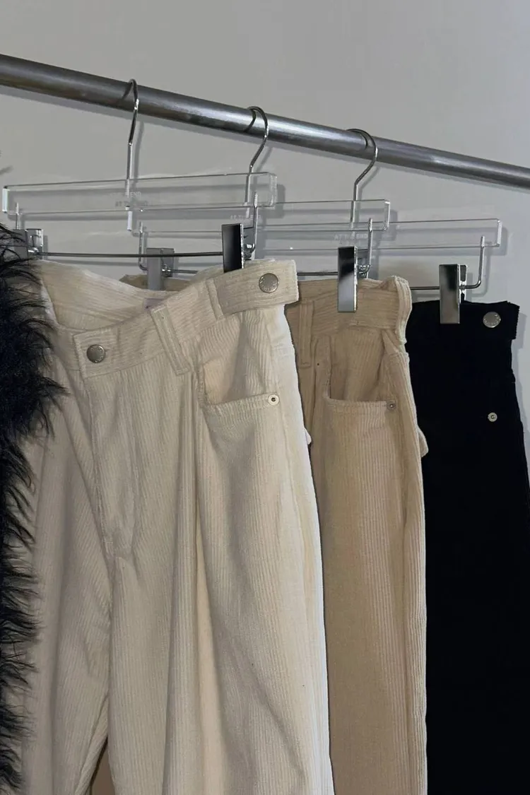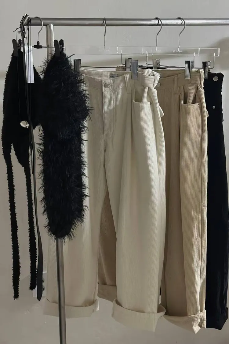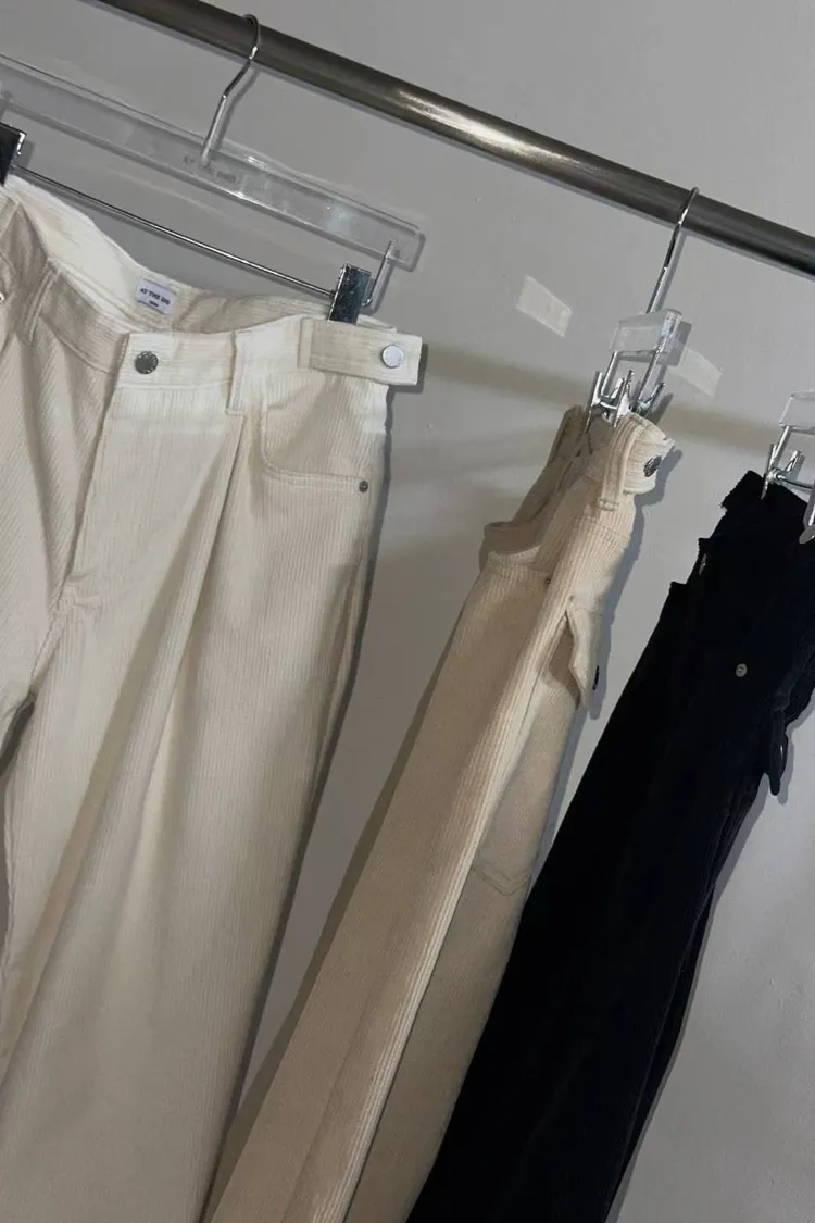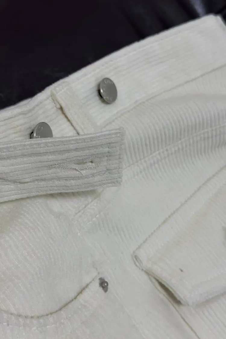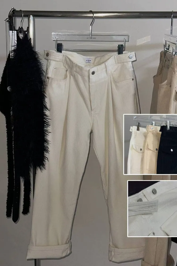側邊帶調節扣的燈芯絨褲(這件小編穿起來比較短)