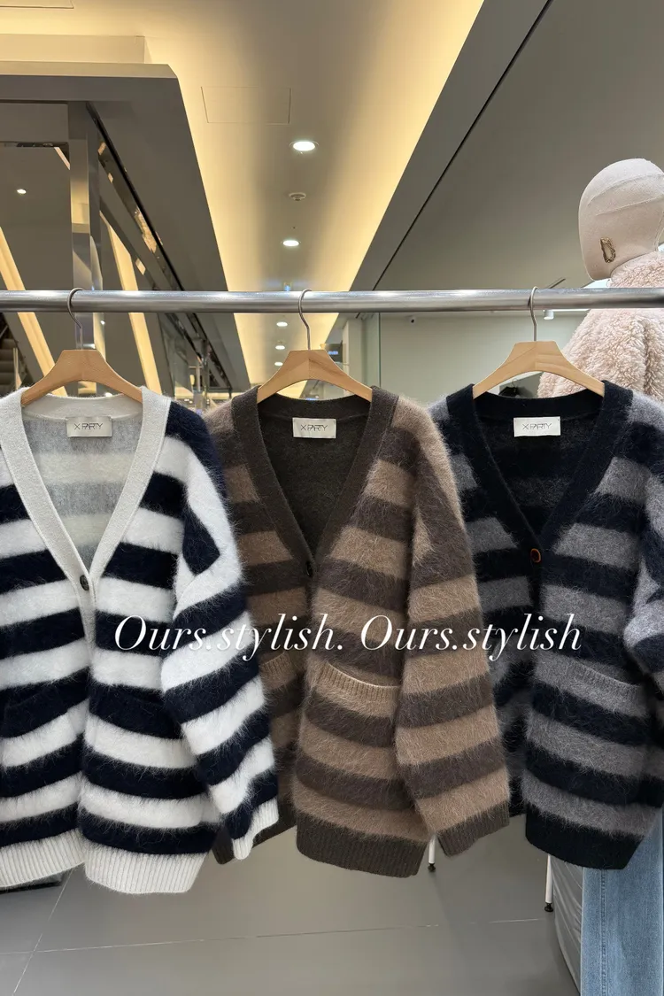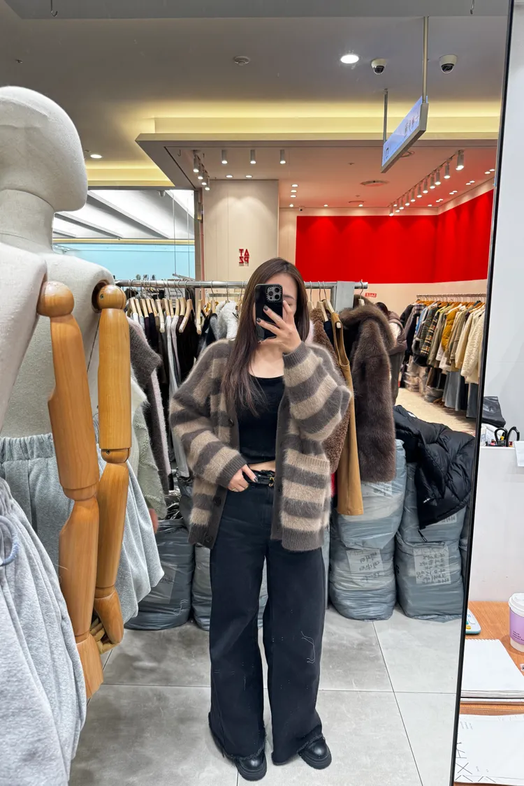 浣熊毛+羊駝毛條紋上衣外套