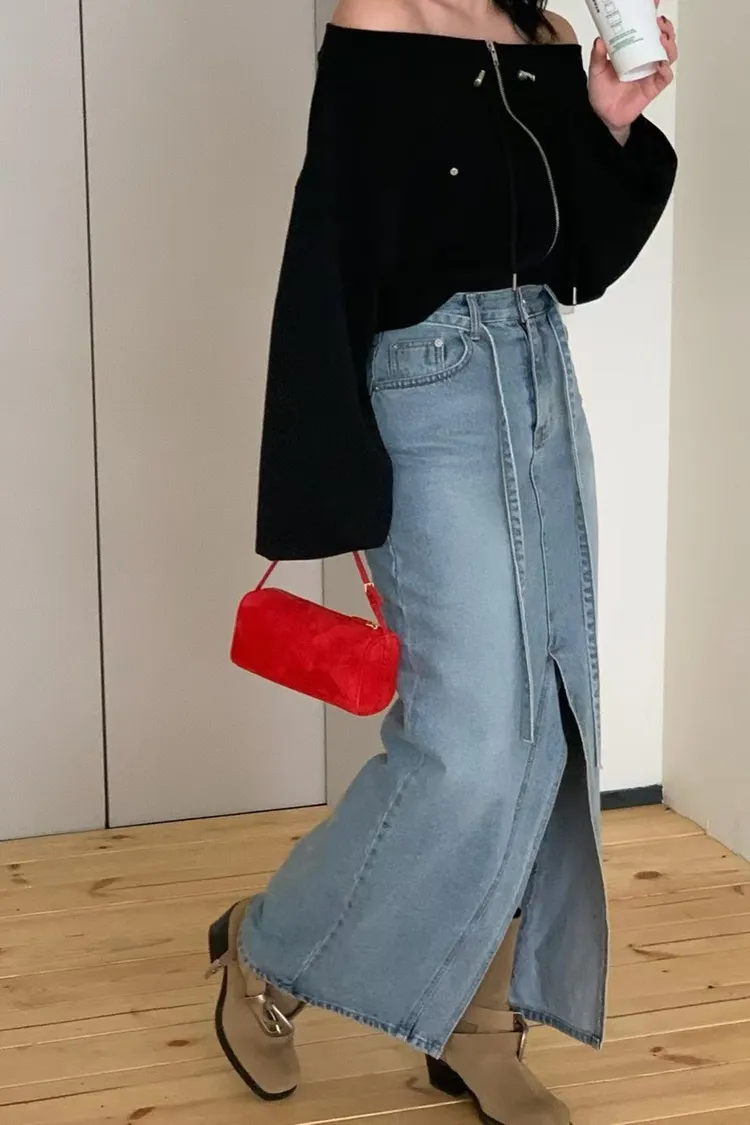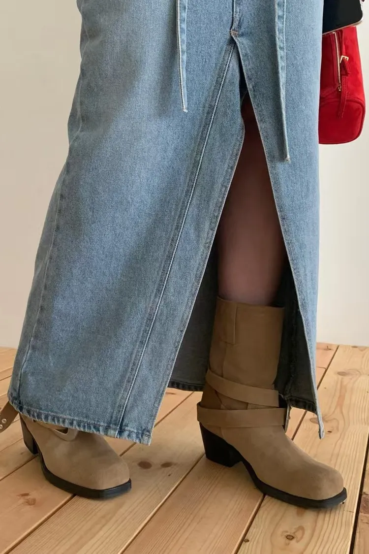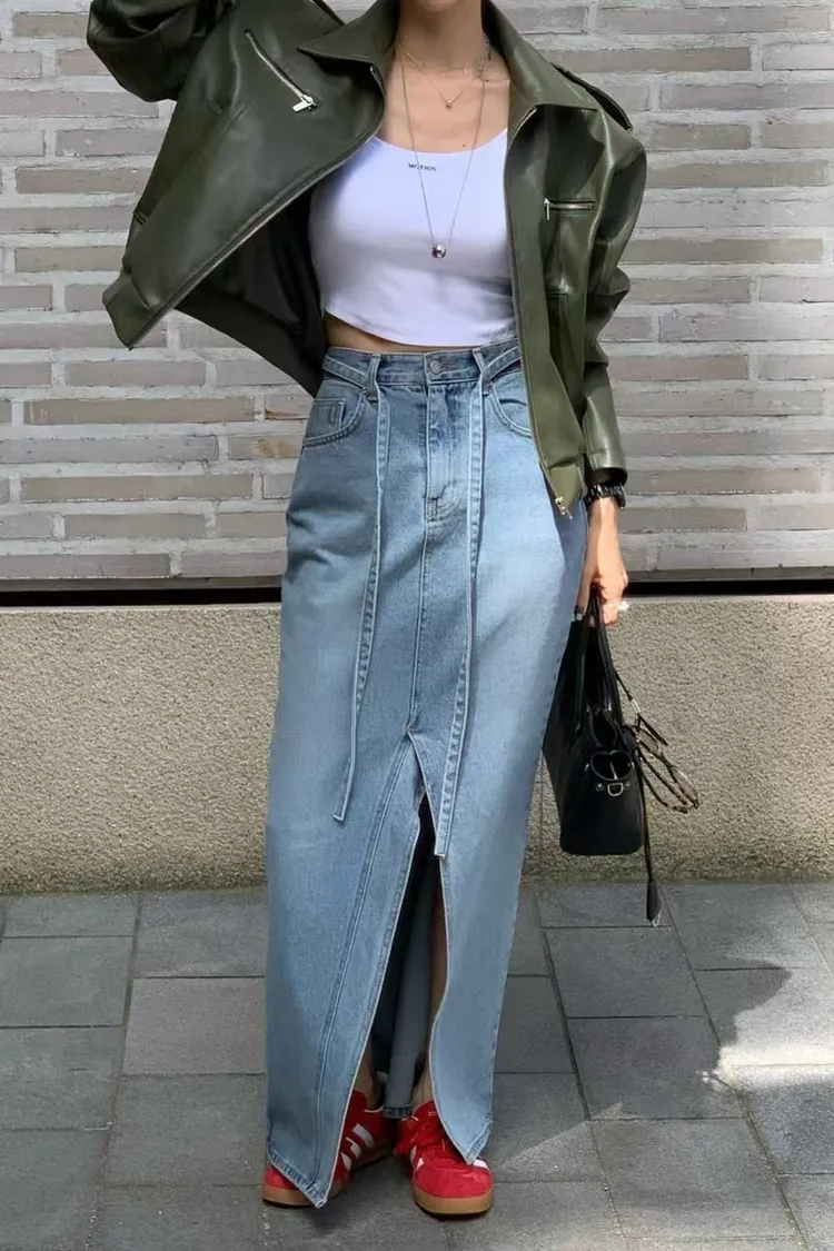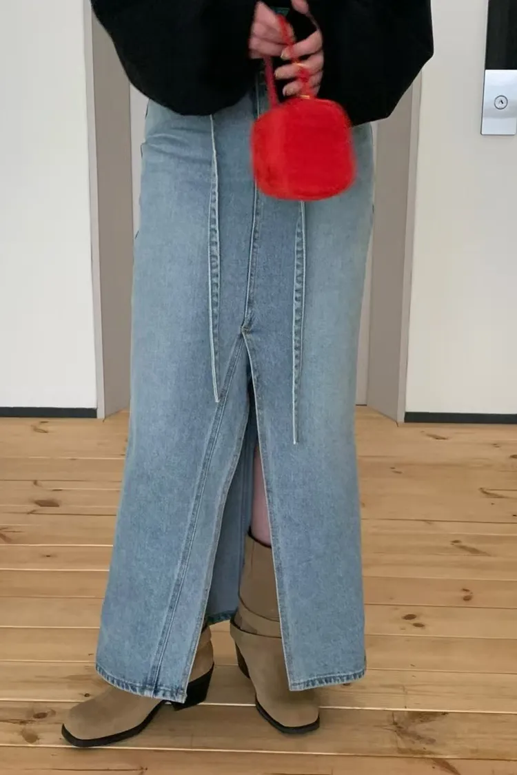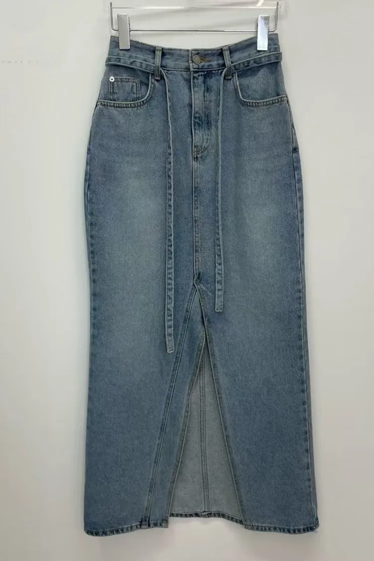 綁腰下擺牛仔裙