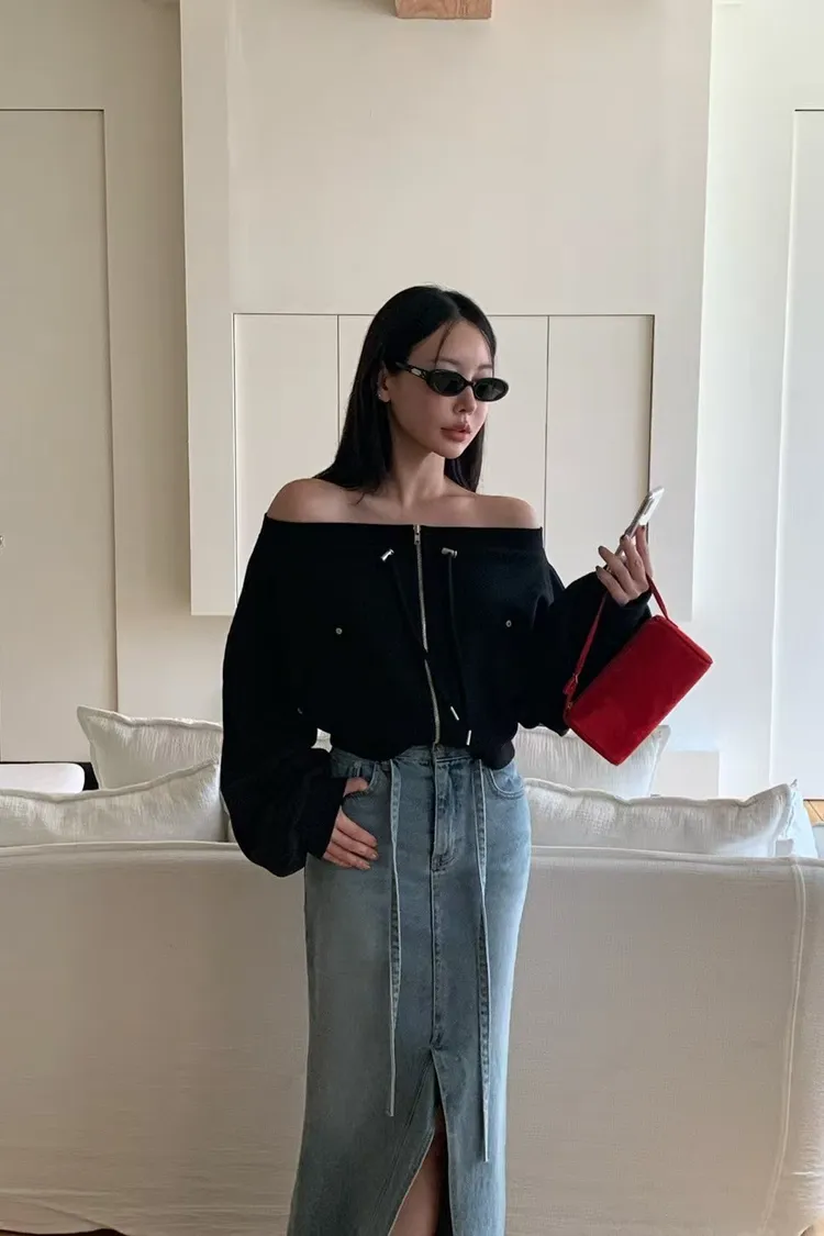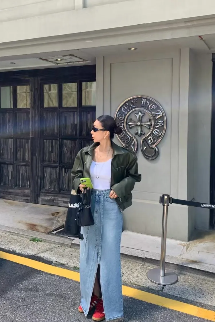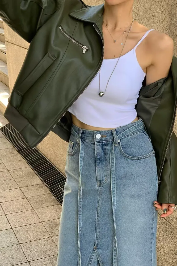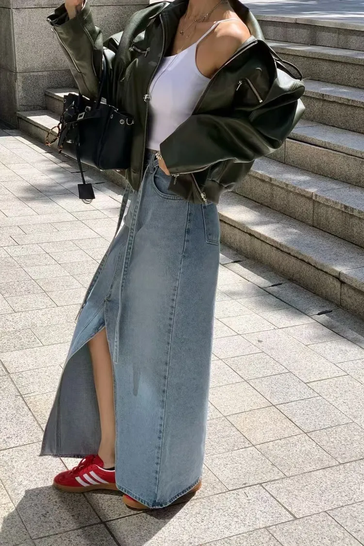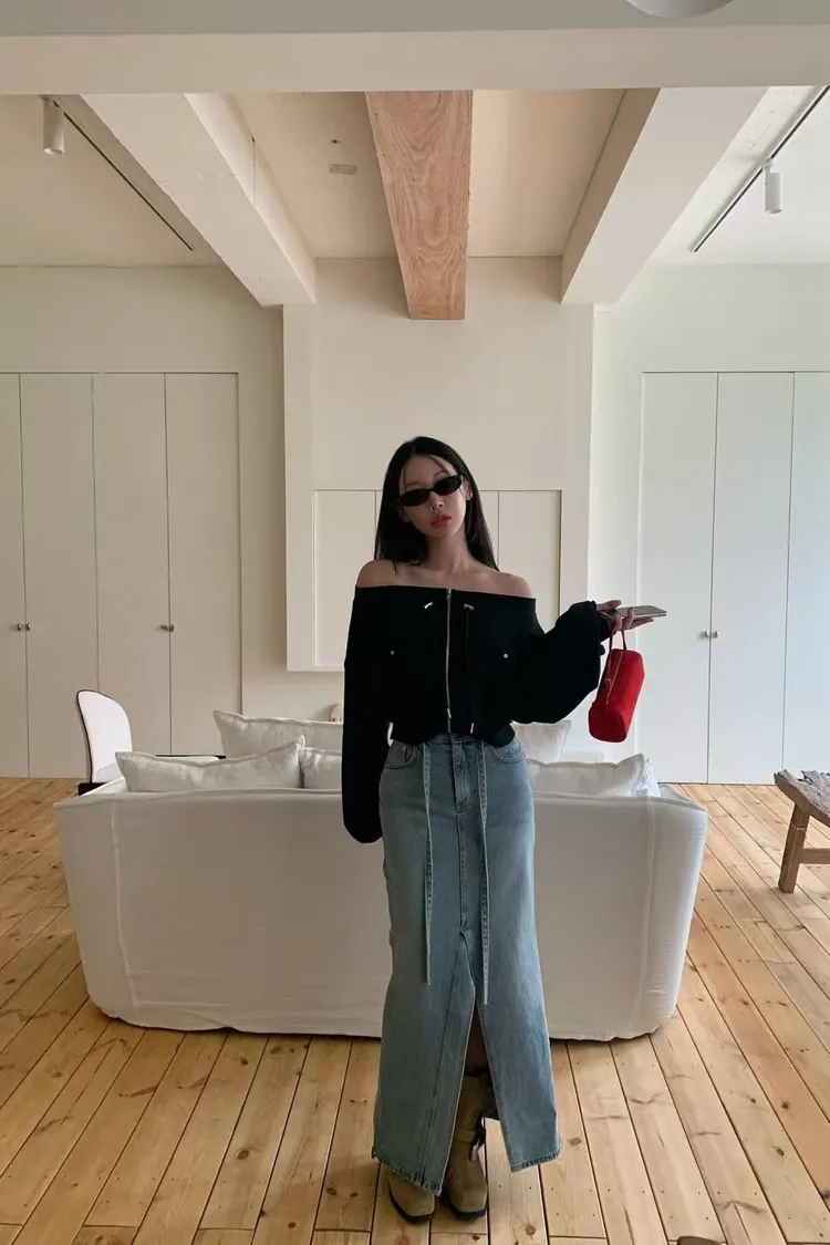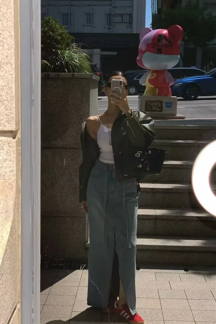 綁腰下擺牛仔裙
