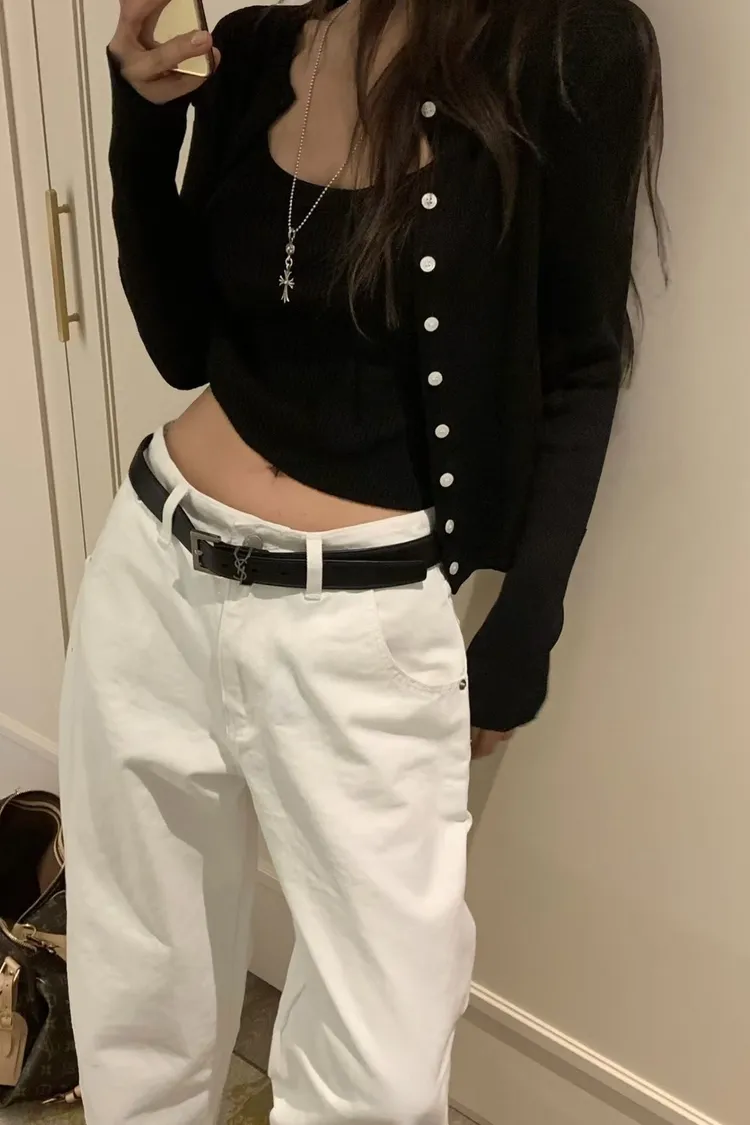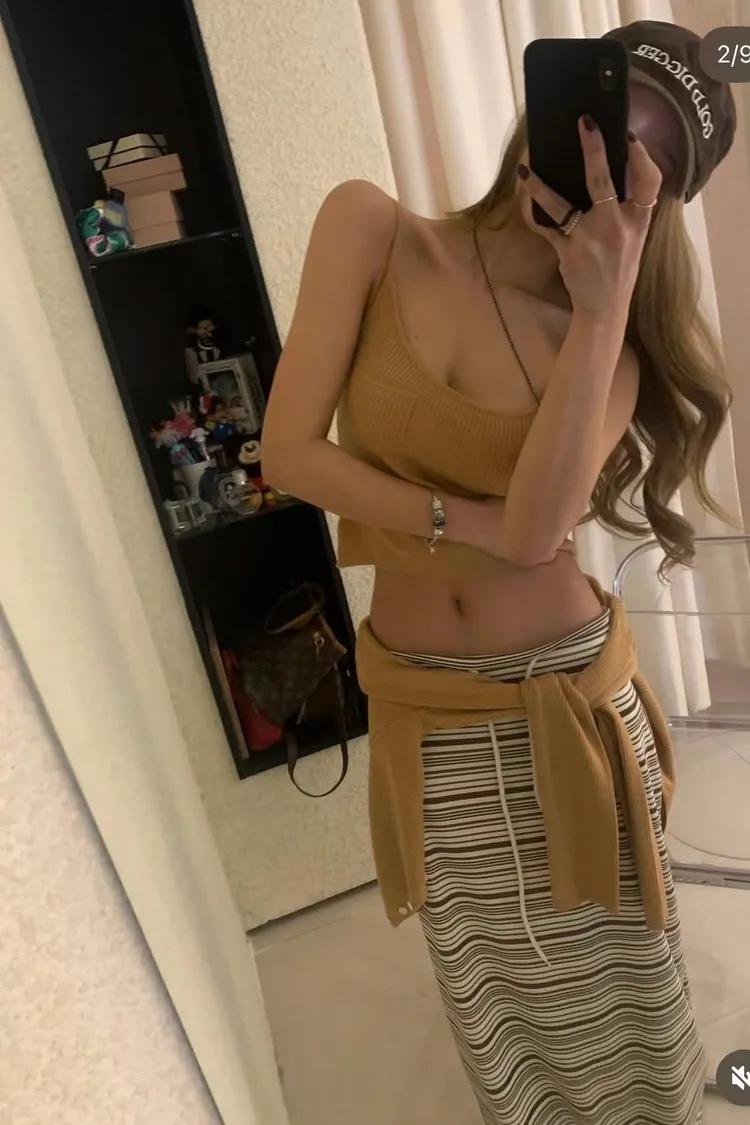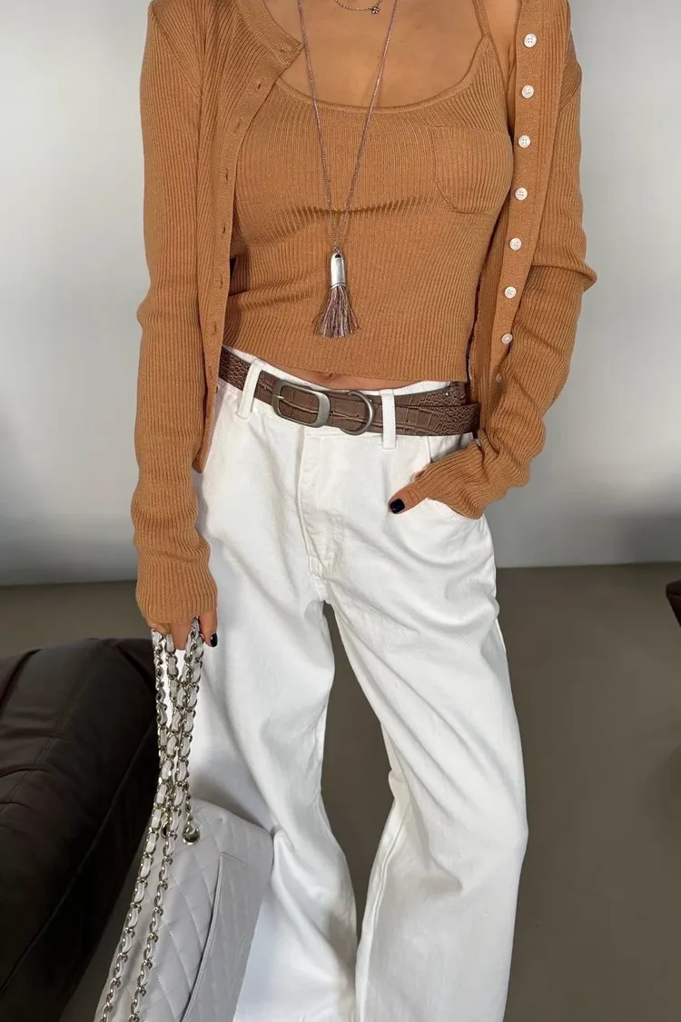 一眼就看上那個橘 細肩帶口帶背心+排釦外套SET