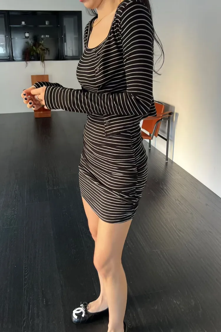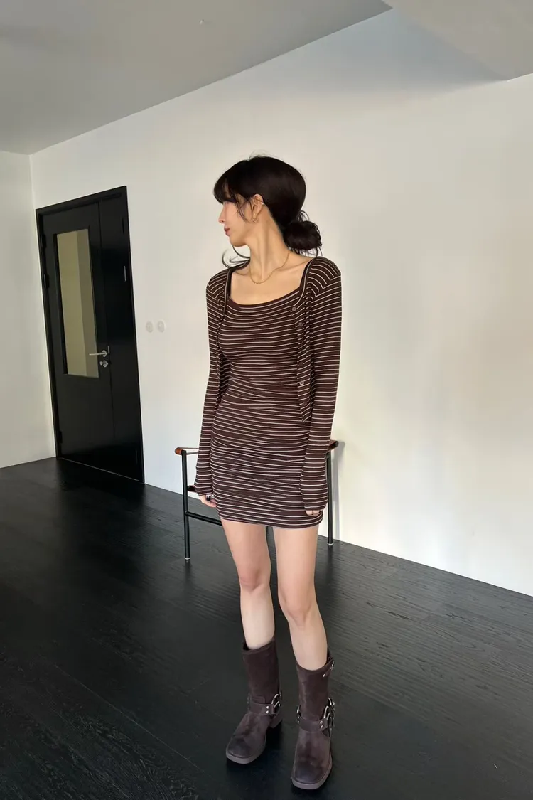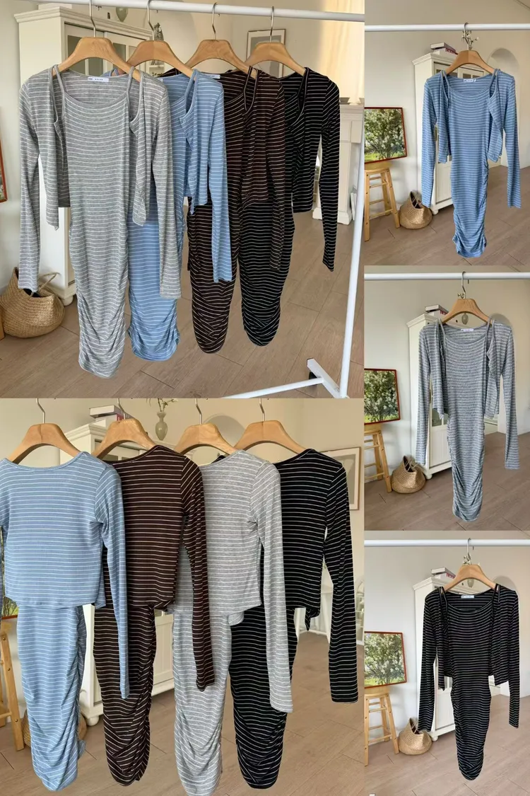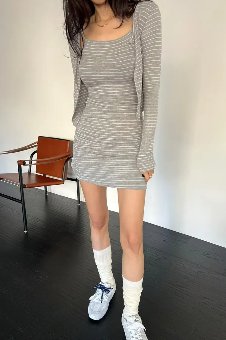 條紋吊帶裙+外套SET