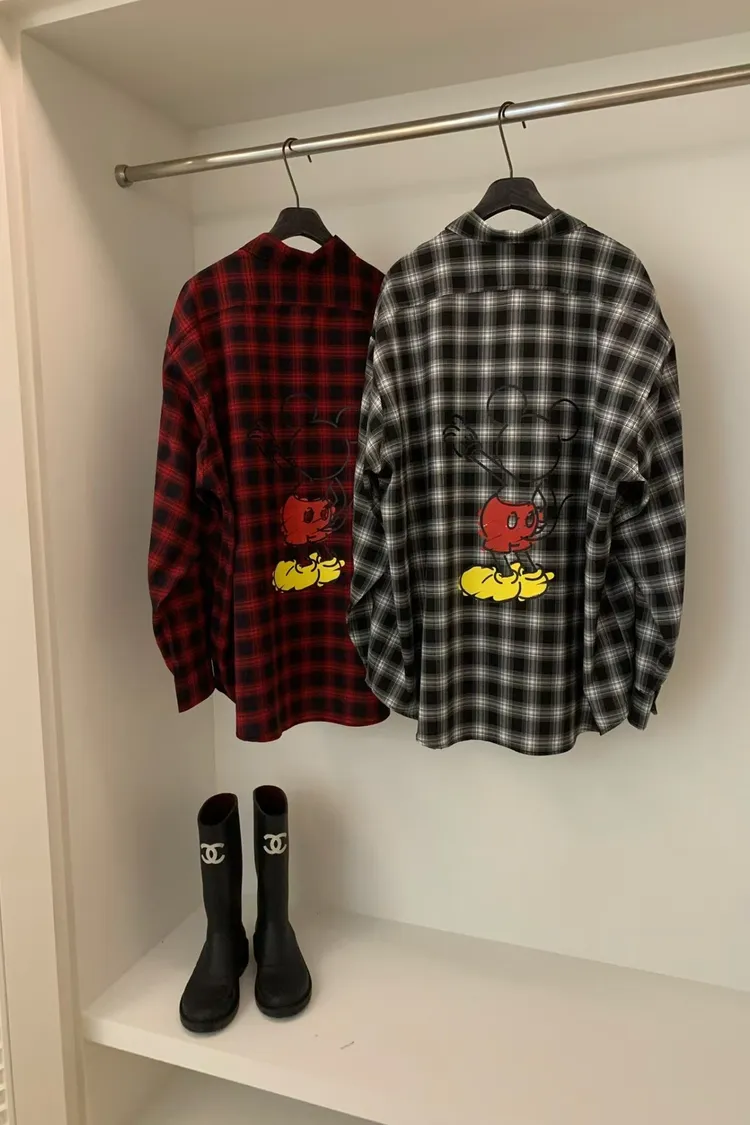 背面米奇格紋襯衫