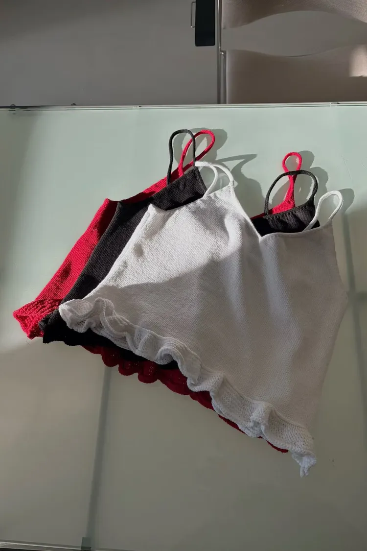 針織吊帶荷葉邊上衣(棉90 尼龍10)
