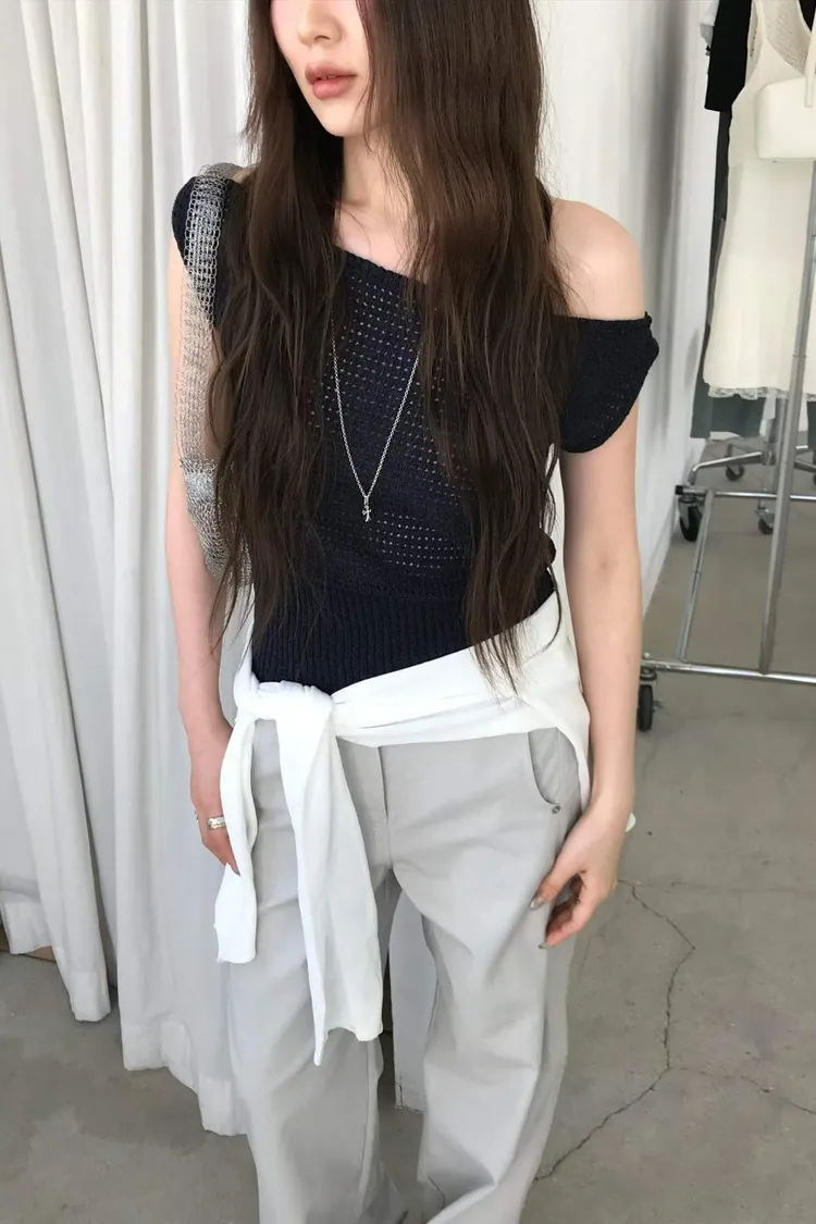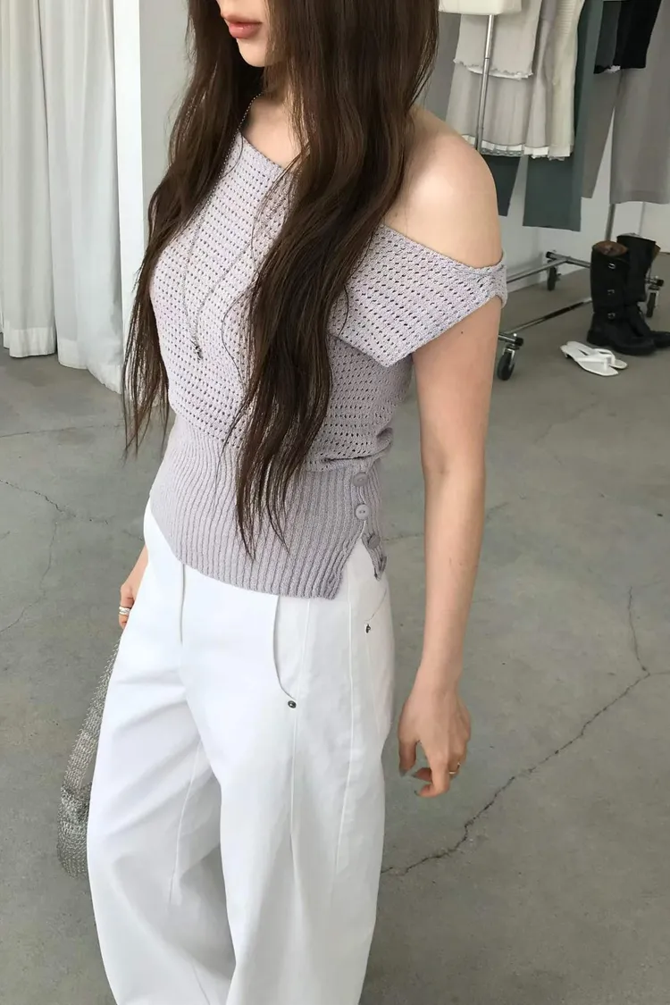 側邊有帶鈕扣上衣(可拉斜肩)