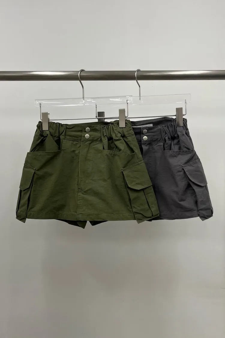 壓扣口袋褲裙