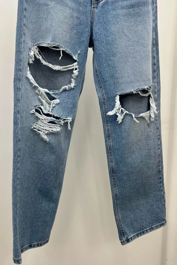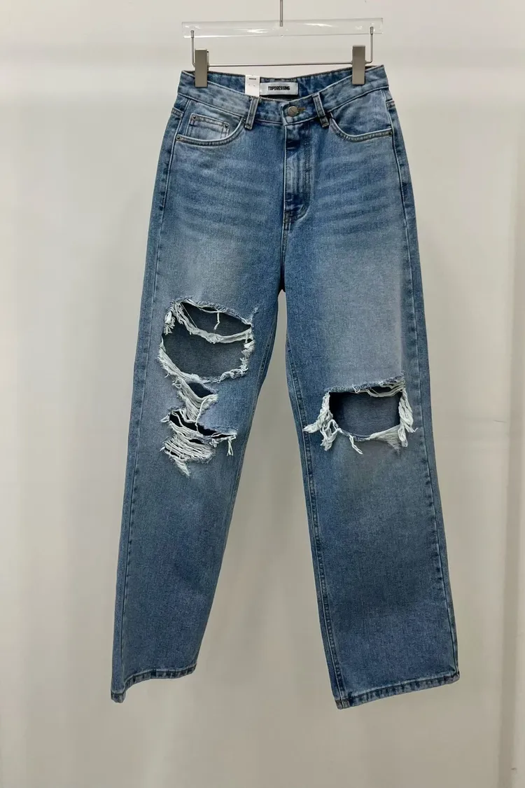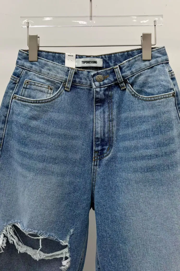 高腰牛仔破褲