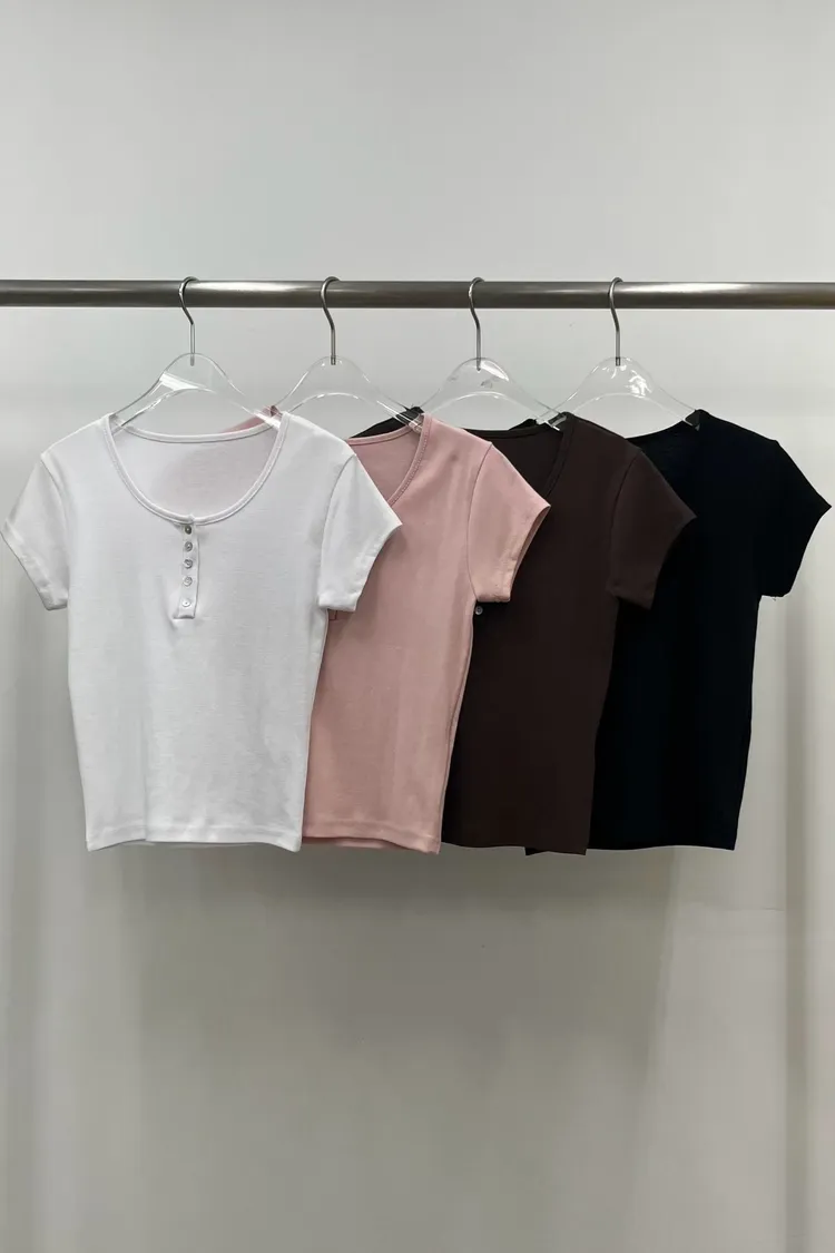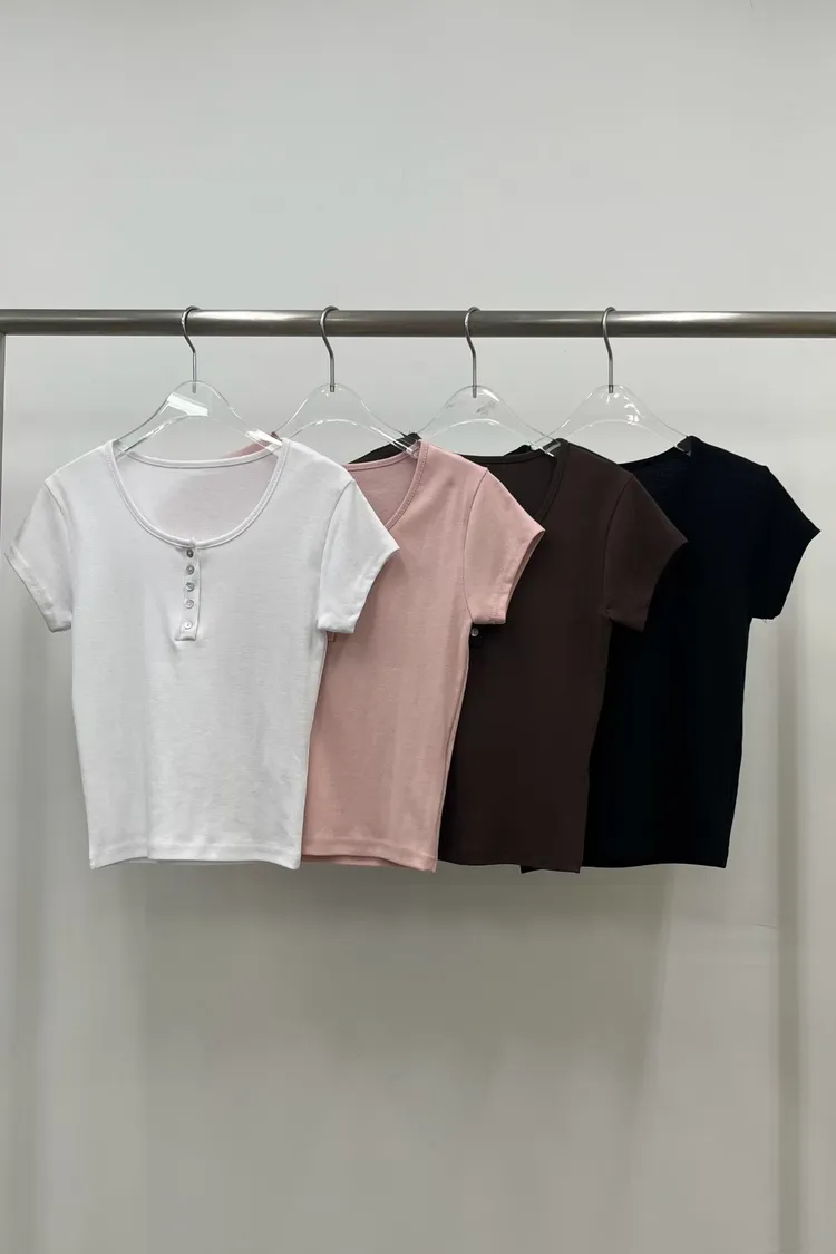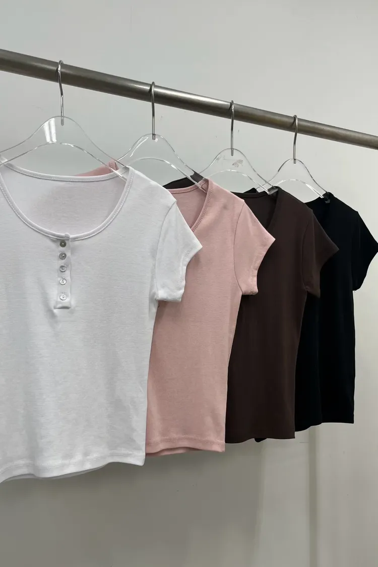 排扣U領上衣(整件彈性)棉100