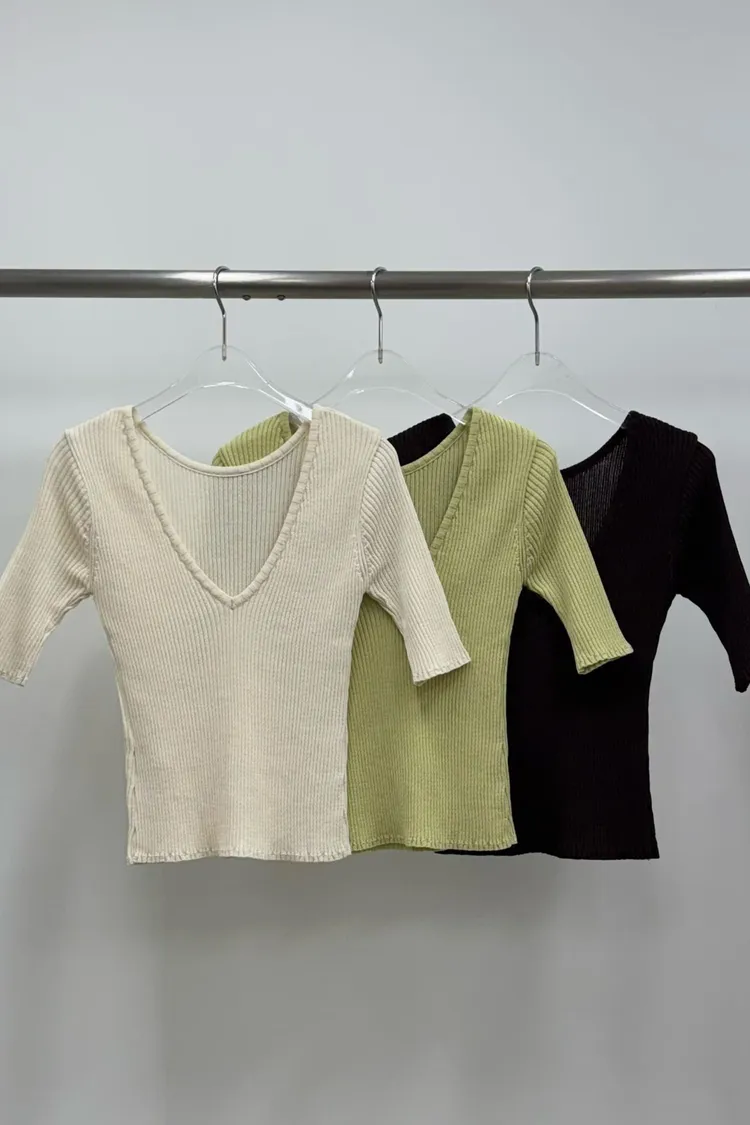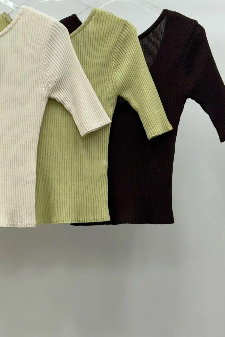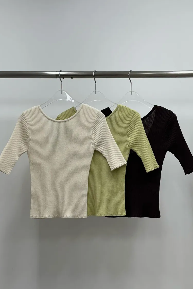 坑條五分袖上衣(棉68 尼龍32)