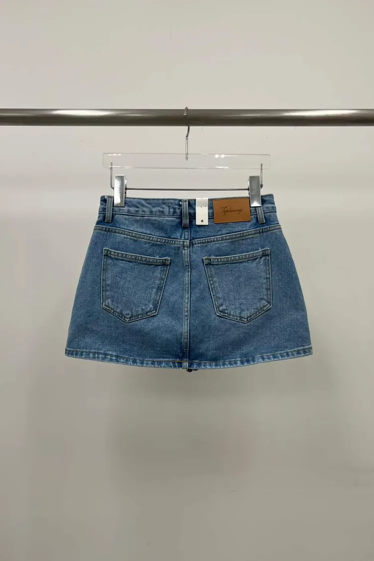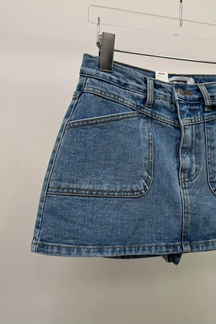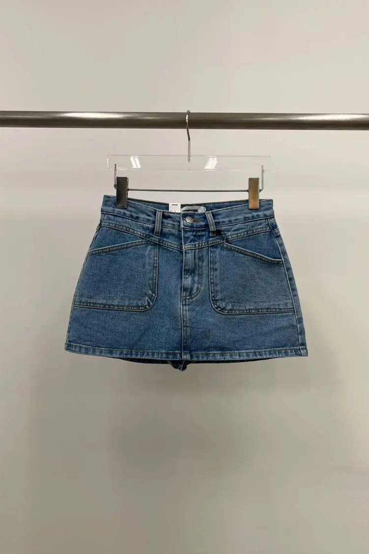 斜切口袋牛仔褲裙