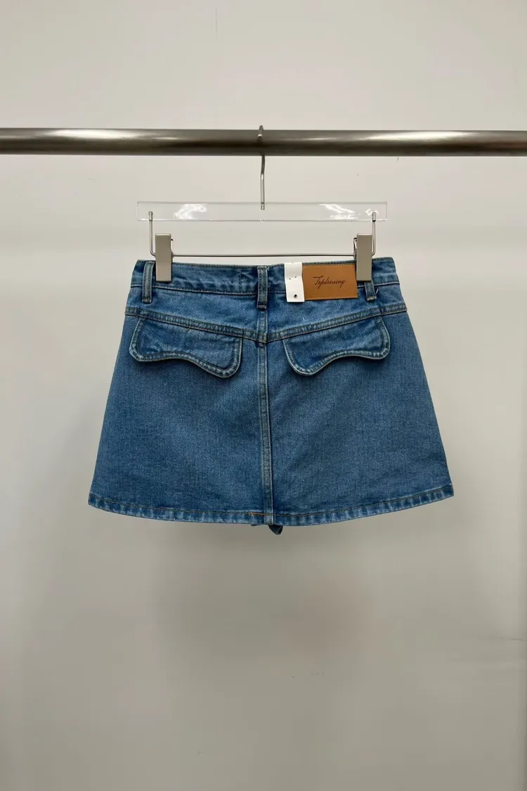 往內切線牛仔褲裙(後面是立體口袋)