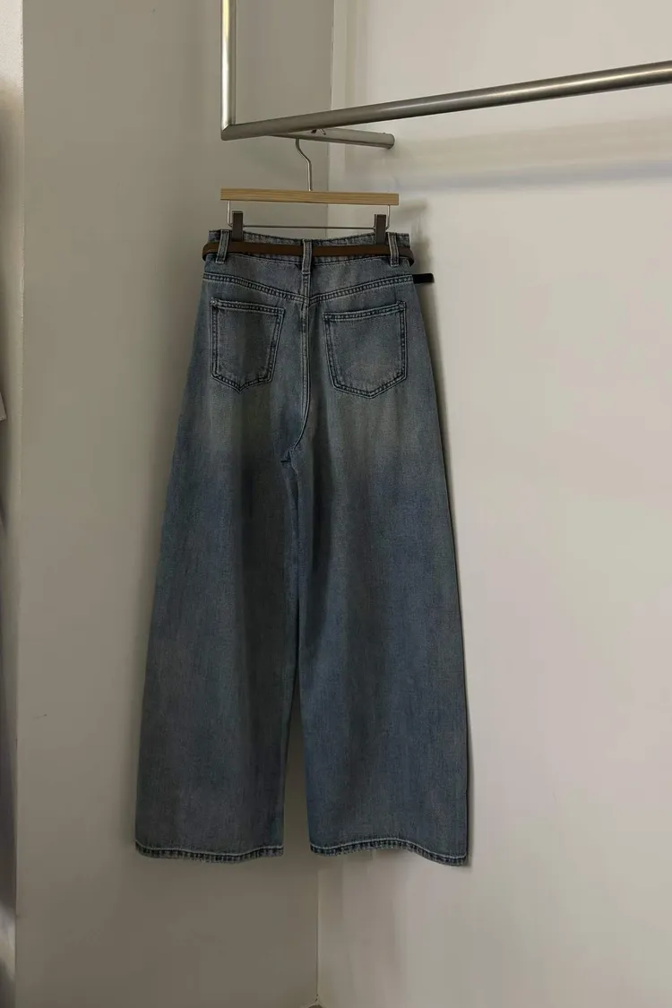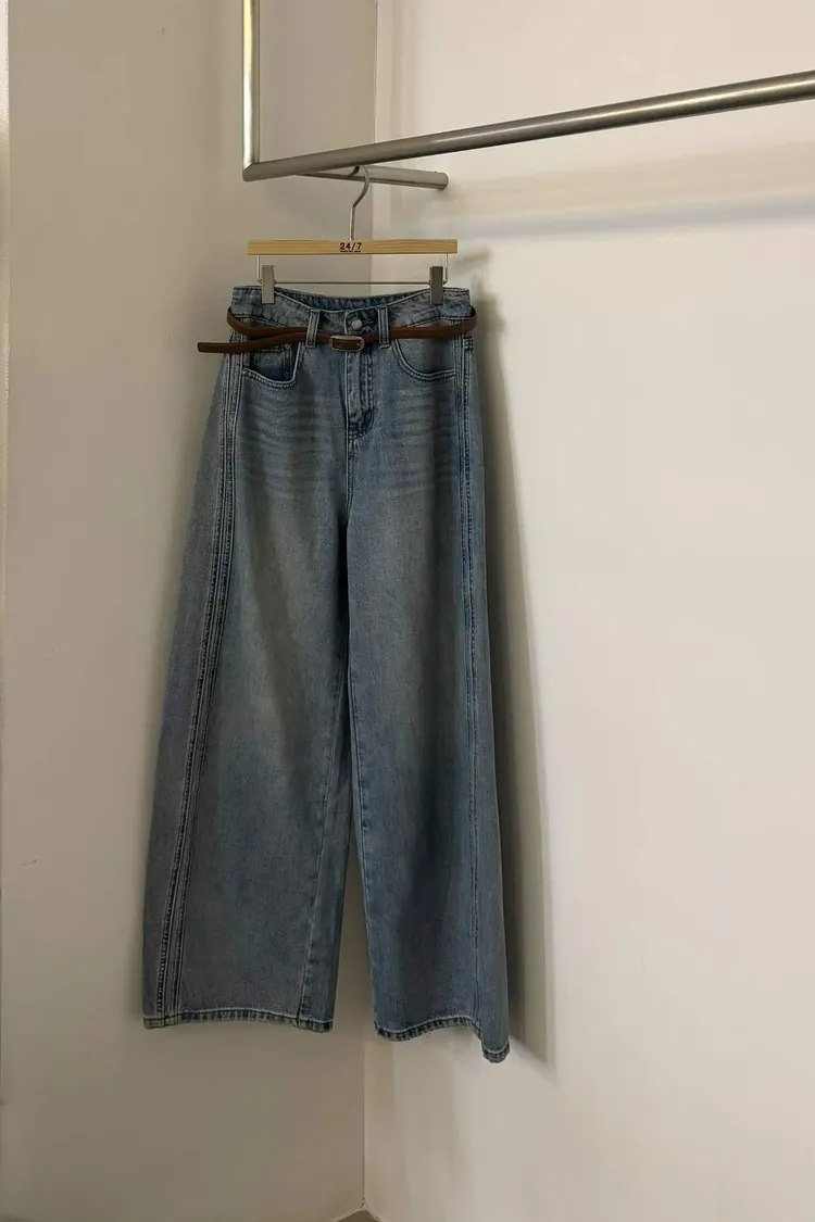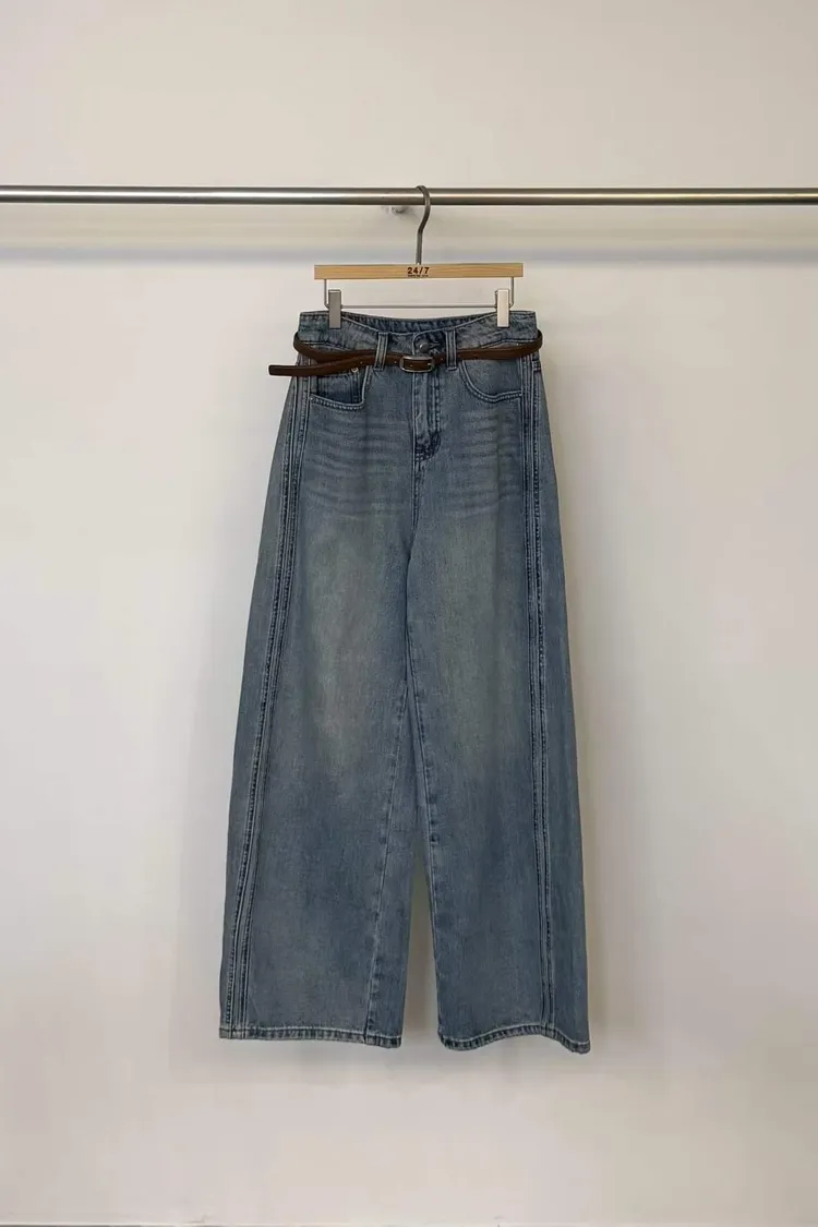 附皮帶牛仔褲(側邊有帶雙壓線)