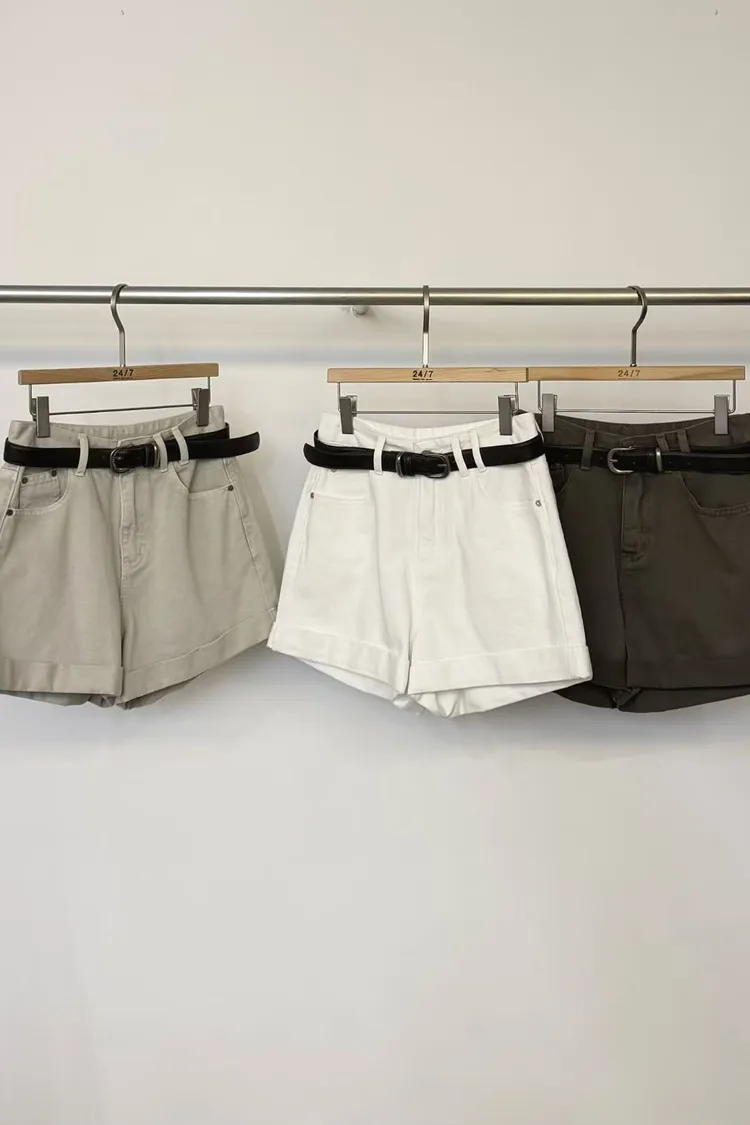 附皮帶反摺短褲(大推軍綠)小編直播穿S