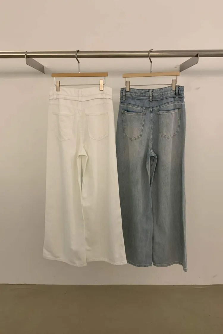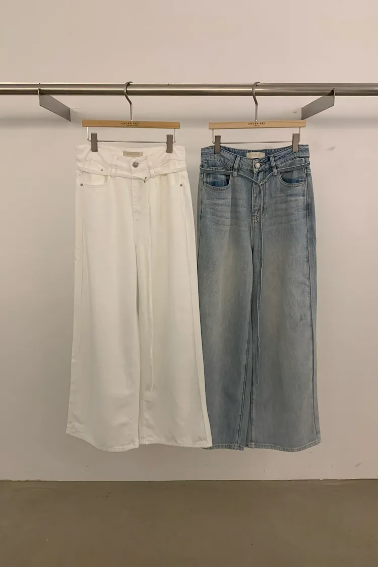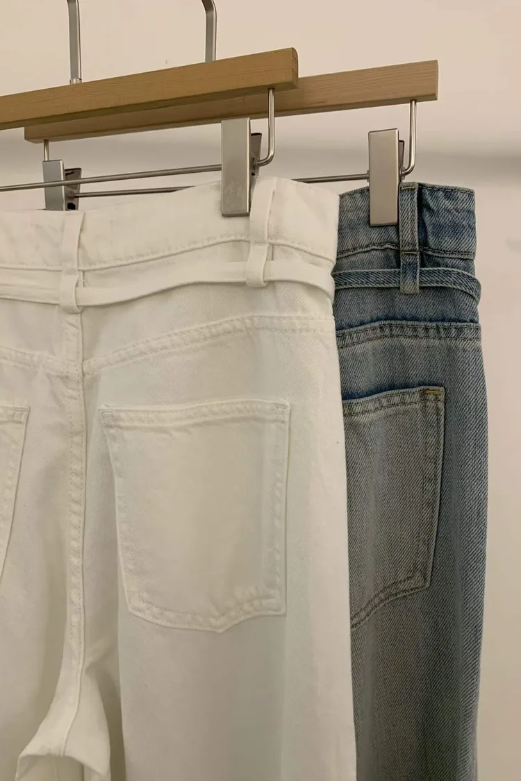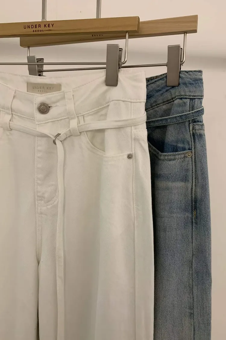 附皮繩直筒牛仔褲(小編直播穿s)