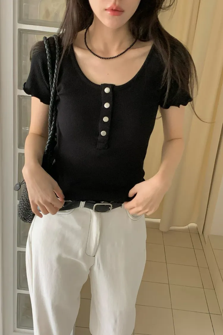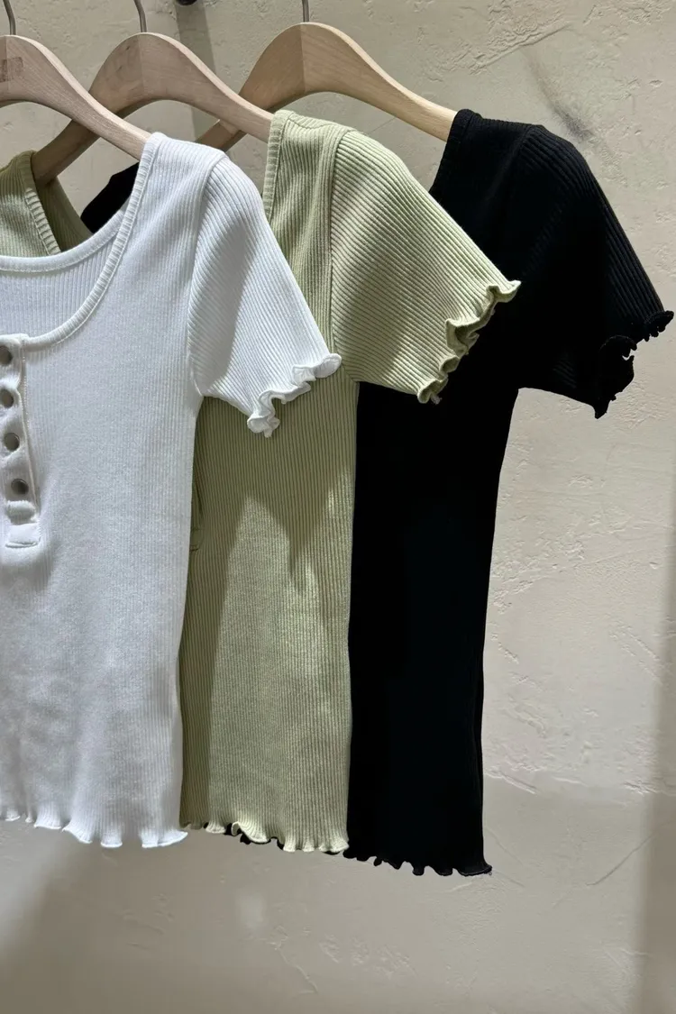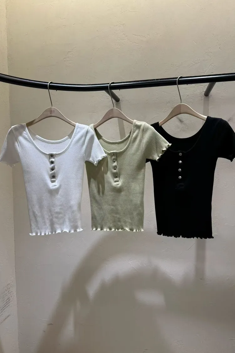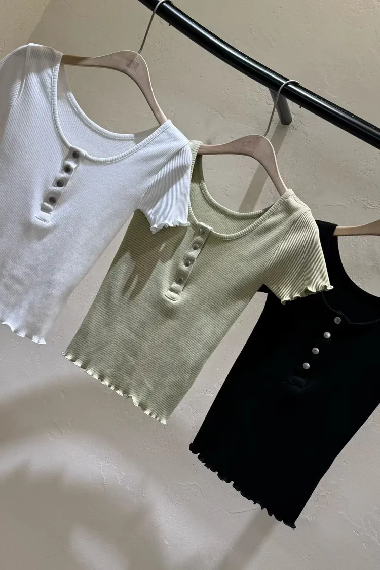 木耳捲邊排扣上衣(棉95%)