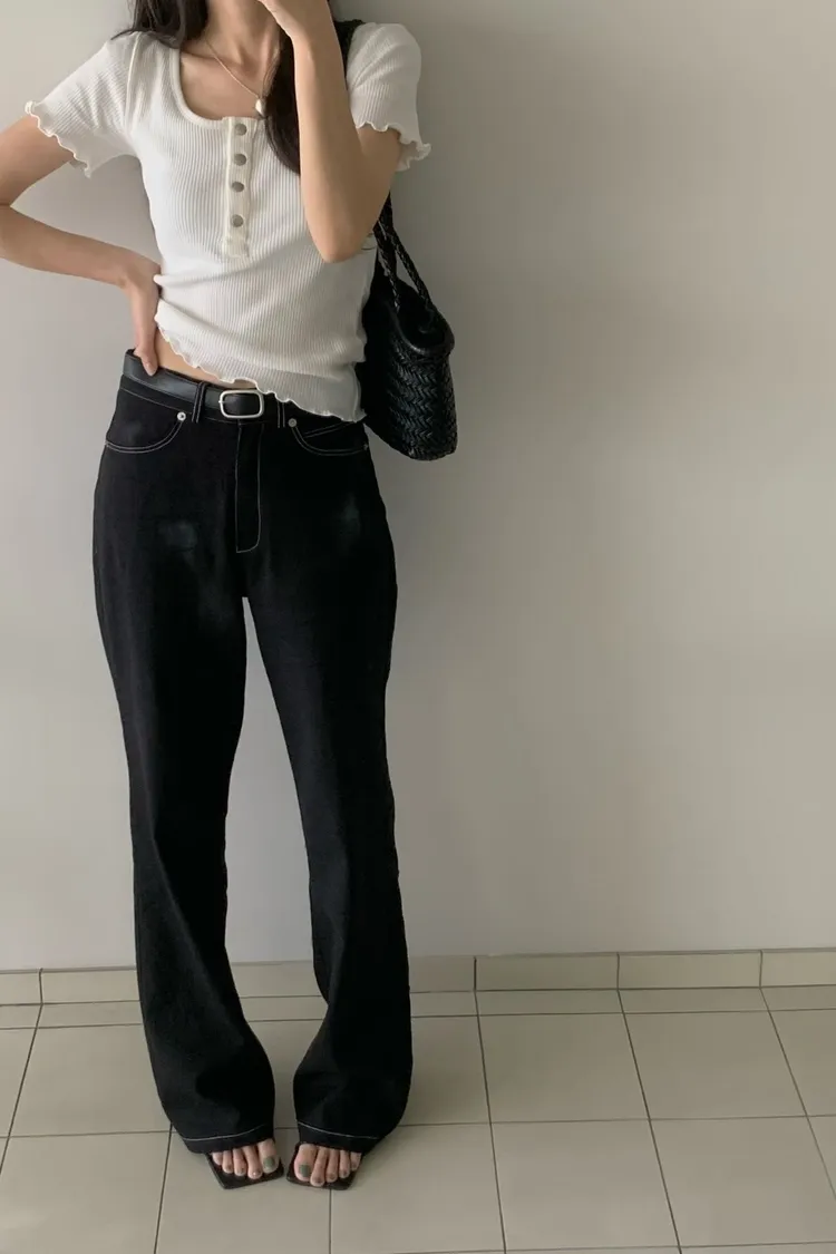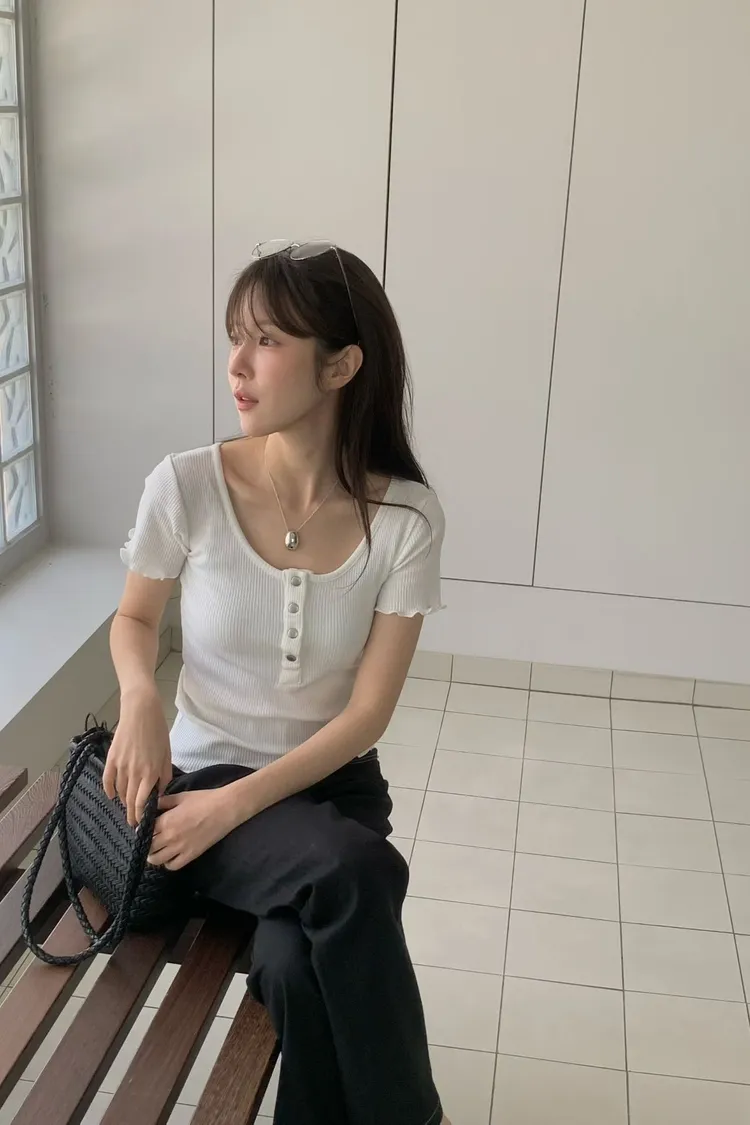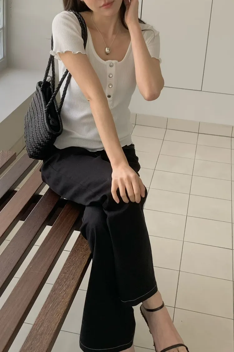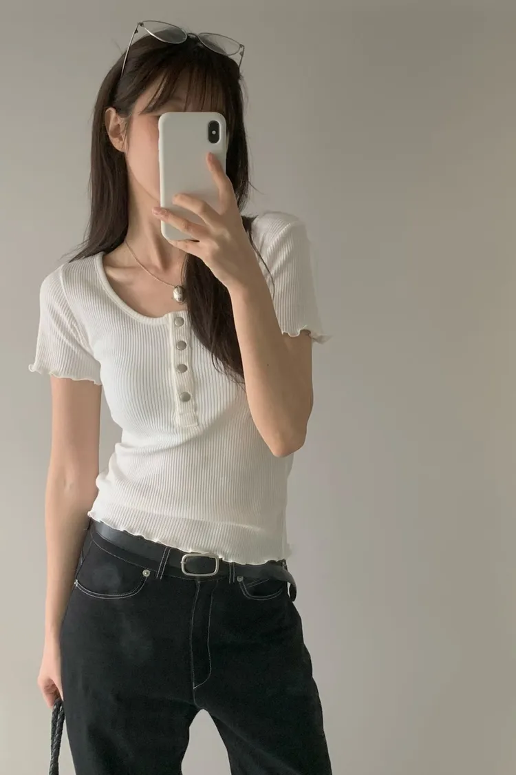 木耳捲邊排扣上衣(棉95%)