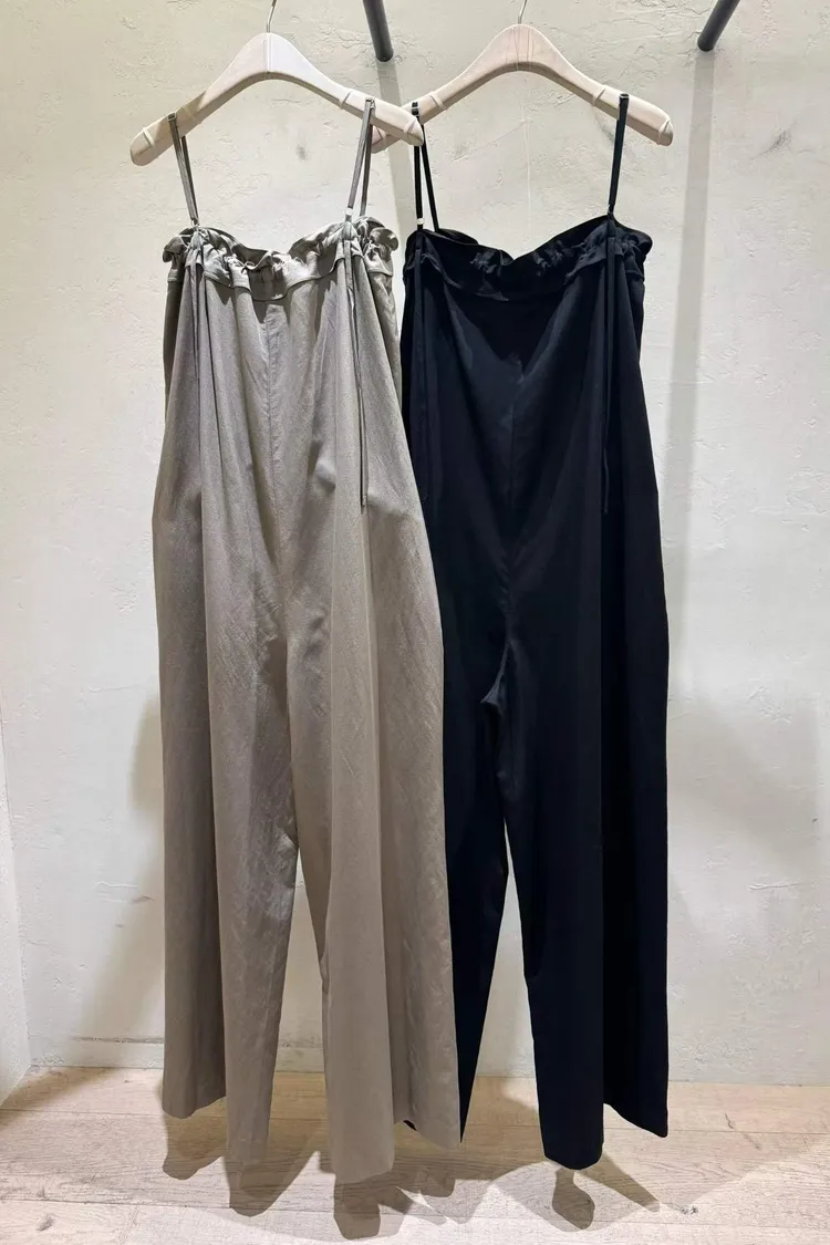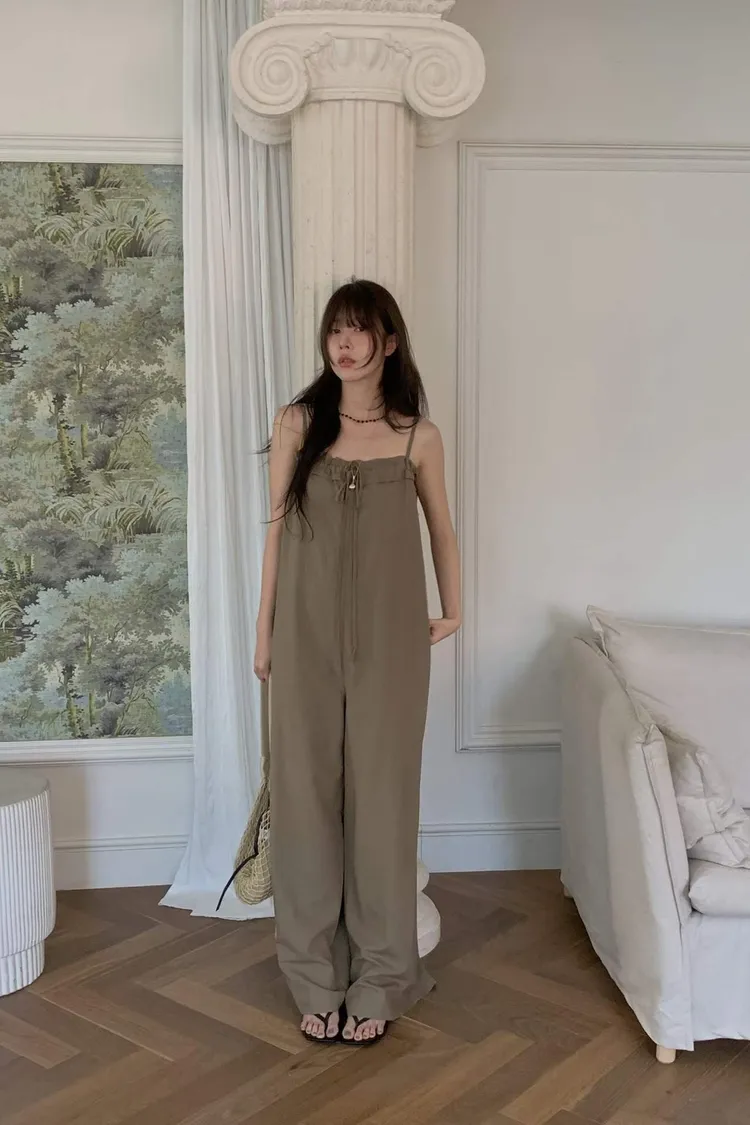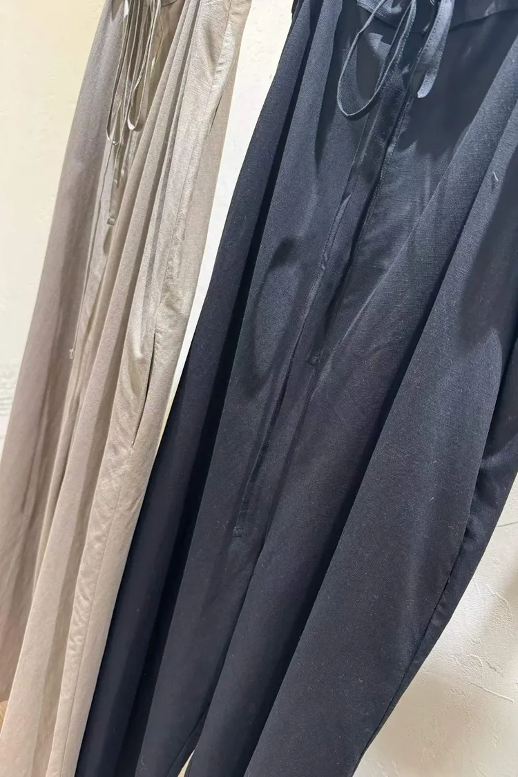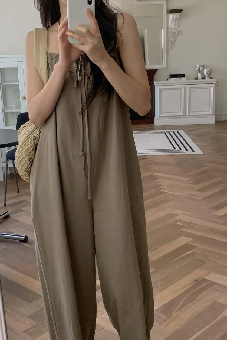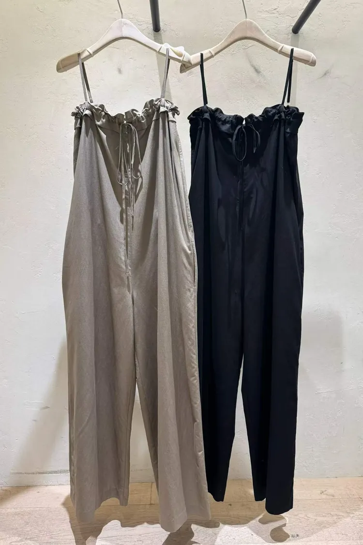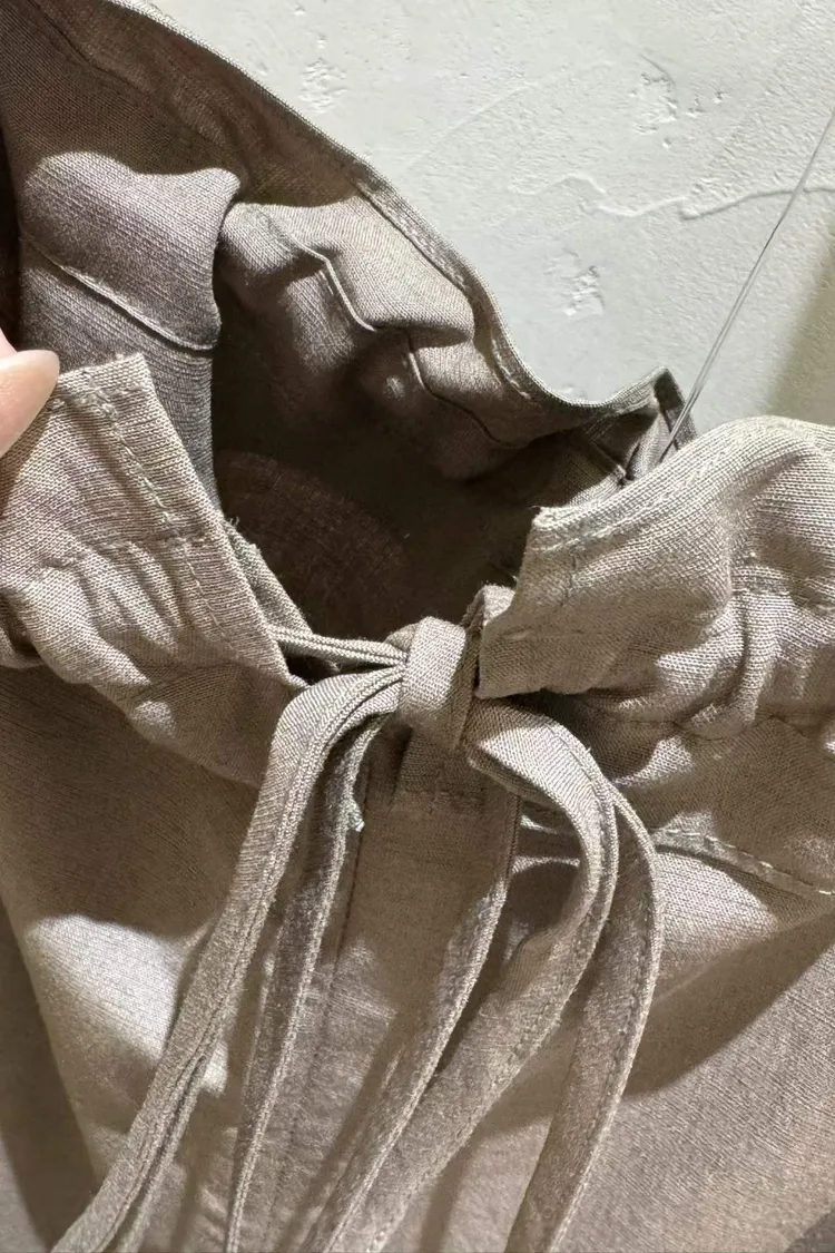 細肩帶抽繩綁帶吊帶褲(人造絲70棉18亞麻14)