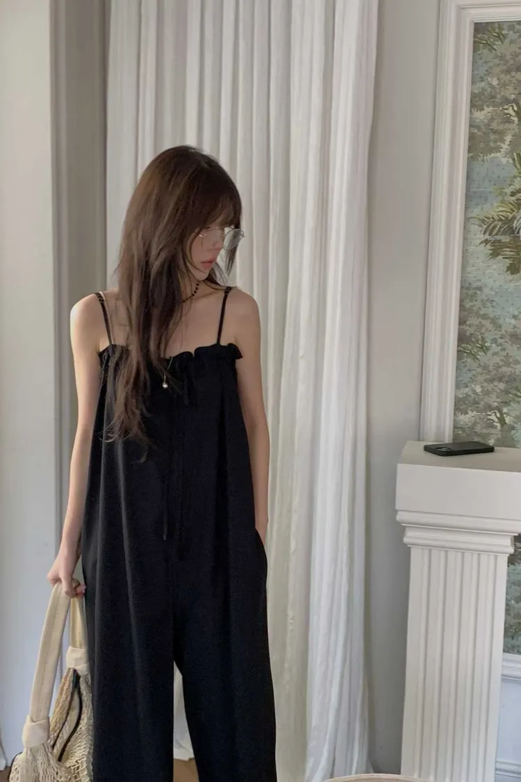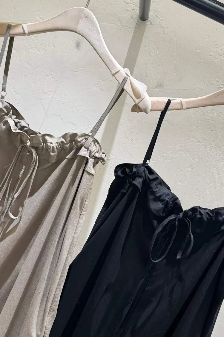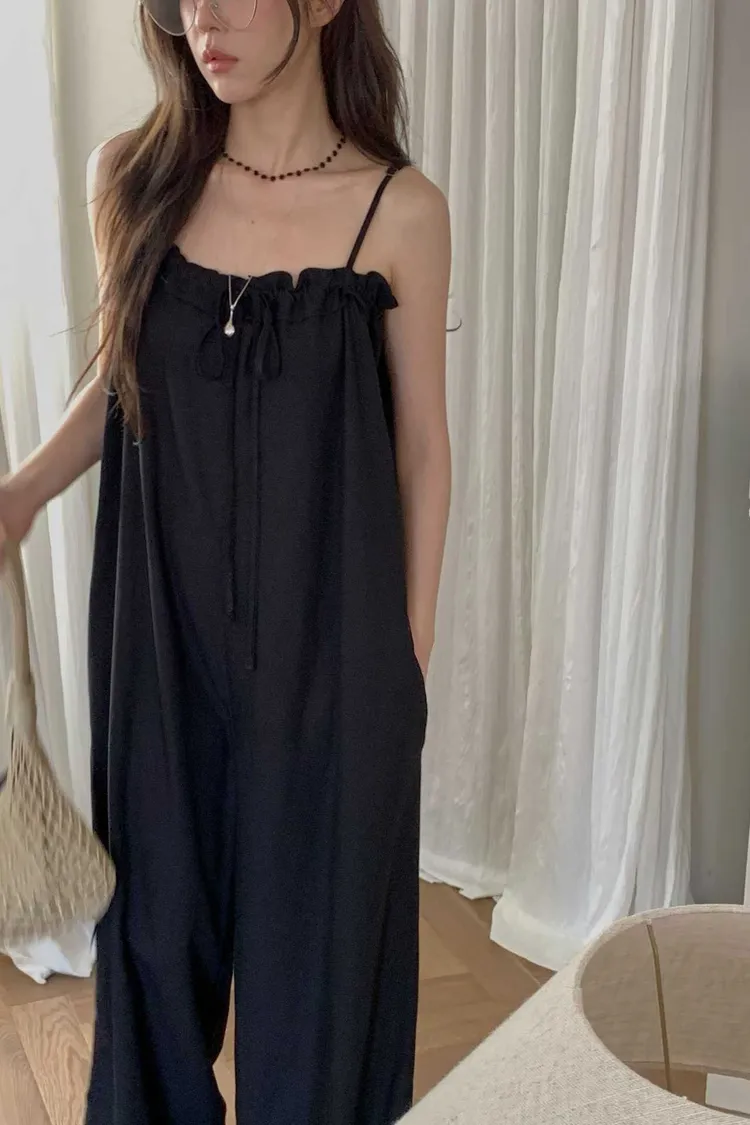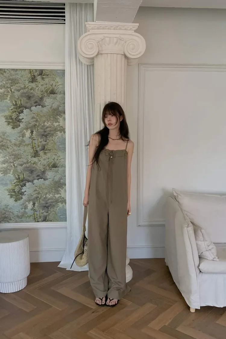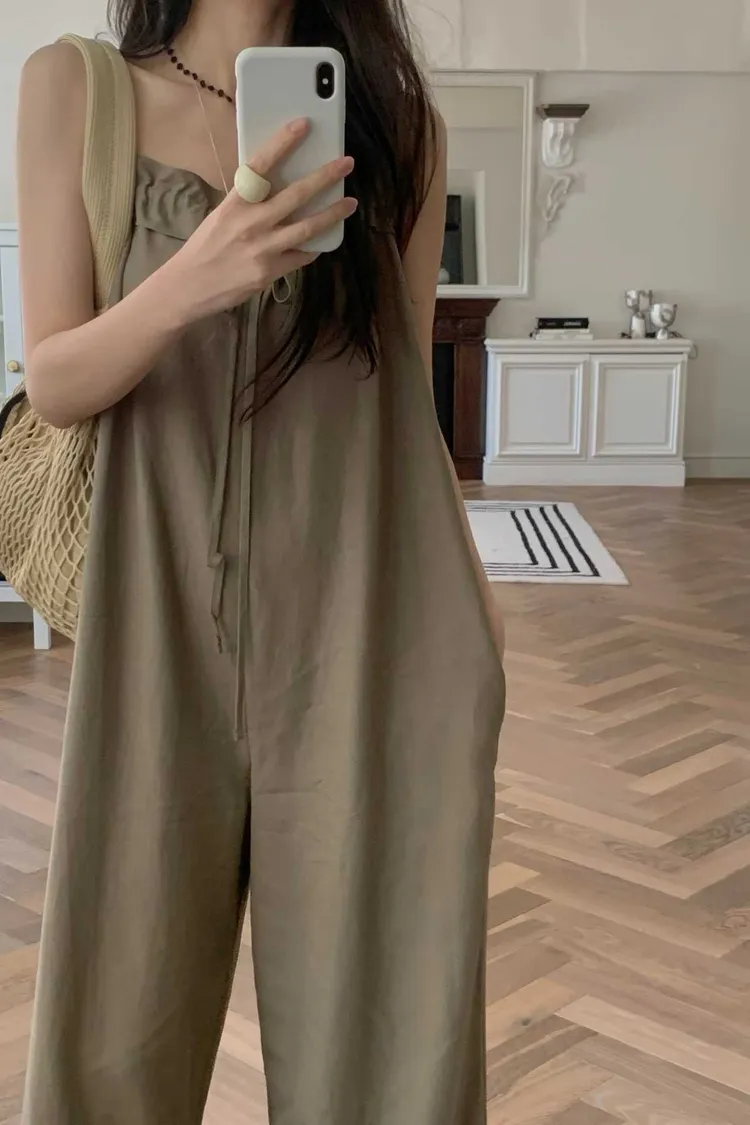 細肩帶抽繩綁帶吊帶褲(人造絲70棉18亞麻14)