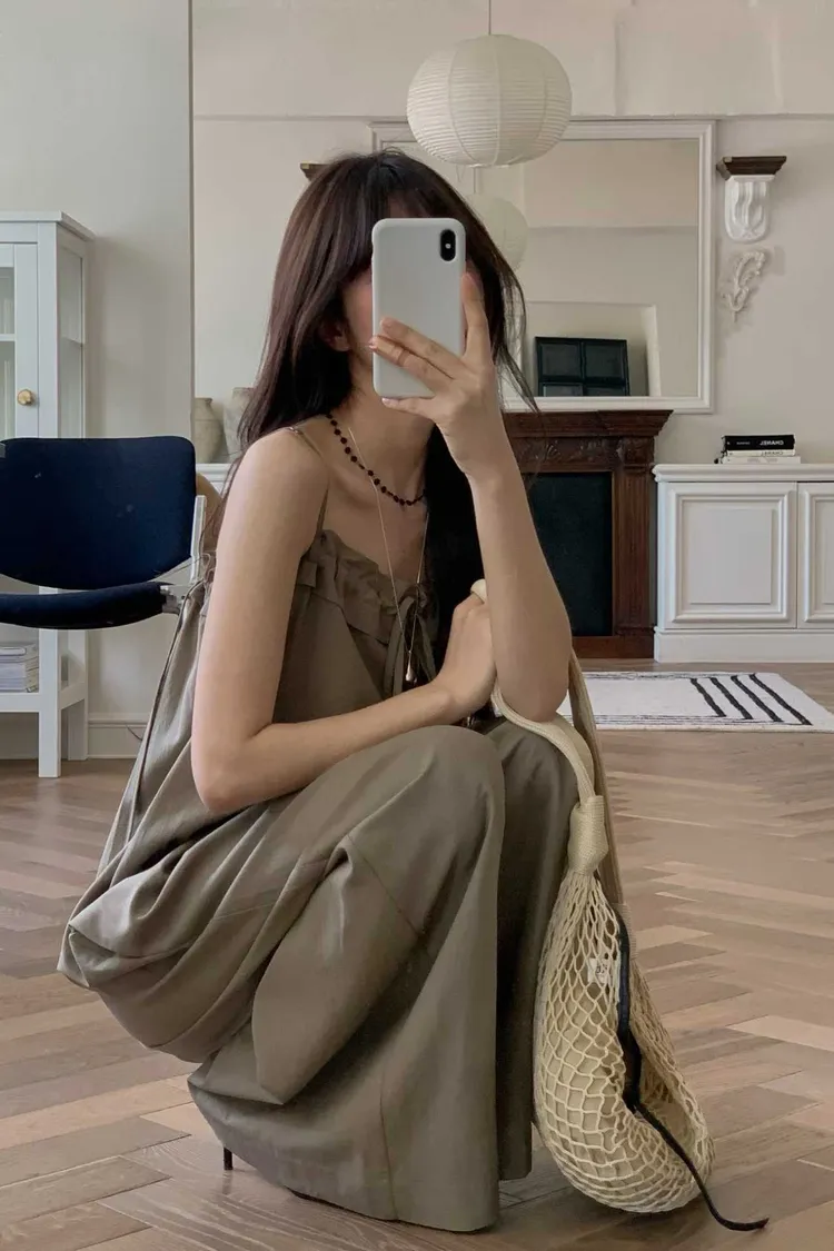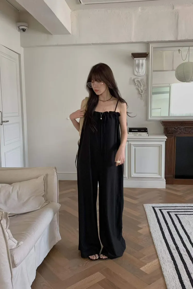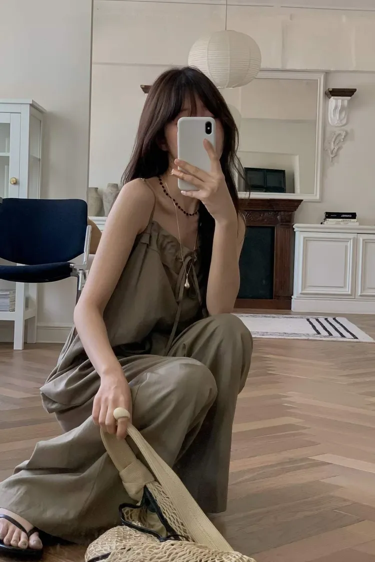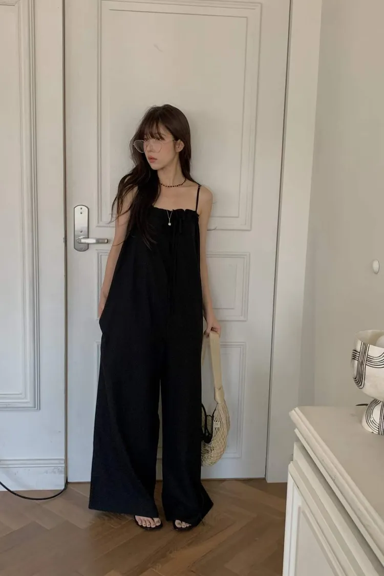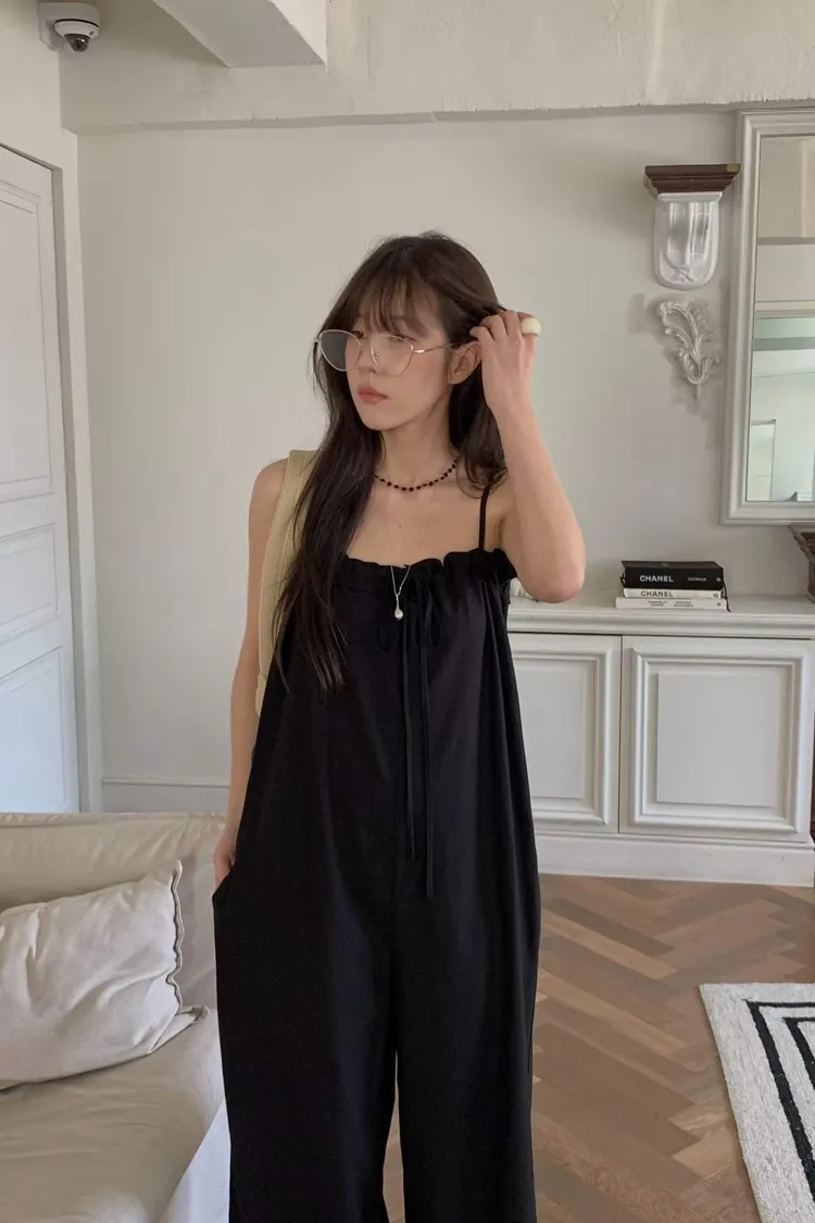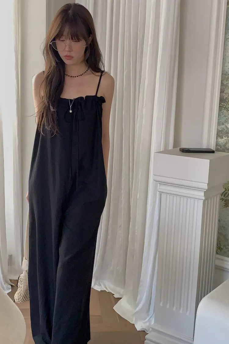 細肩帶抽繩綁帶吊帶褲(人造絲70棉18亞麻14)