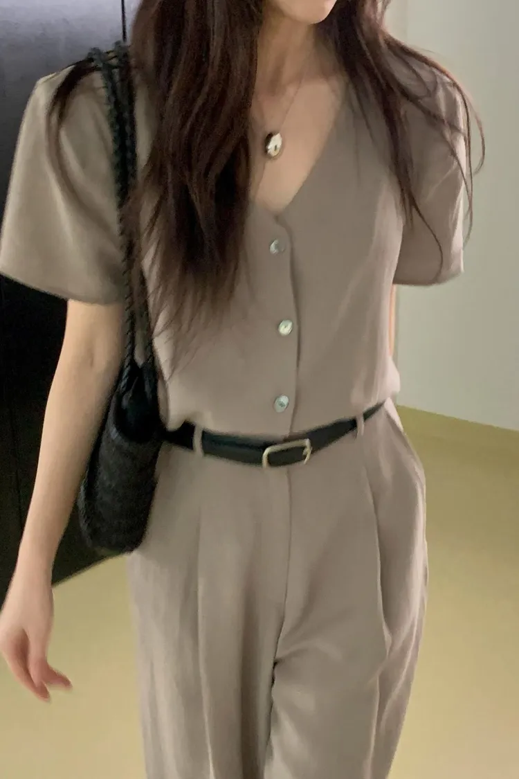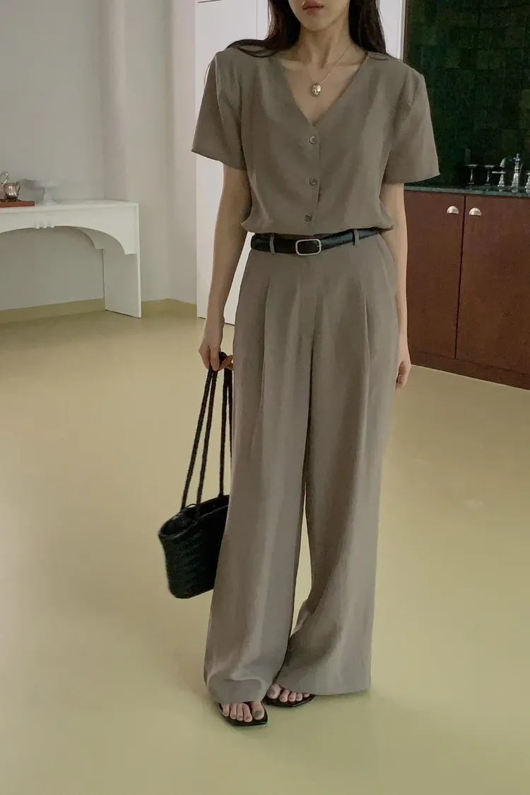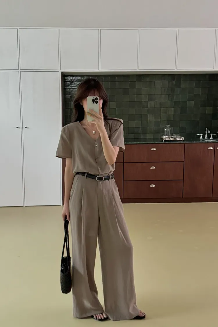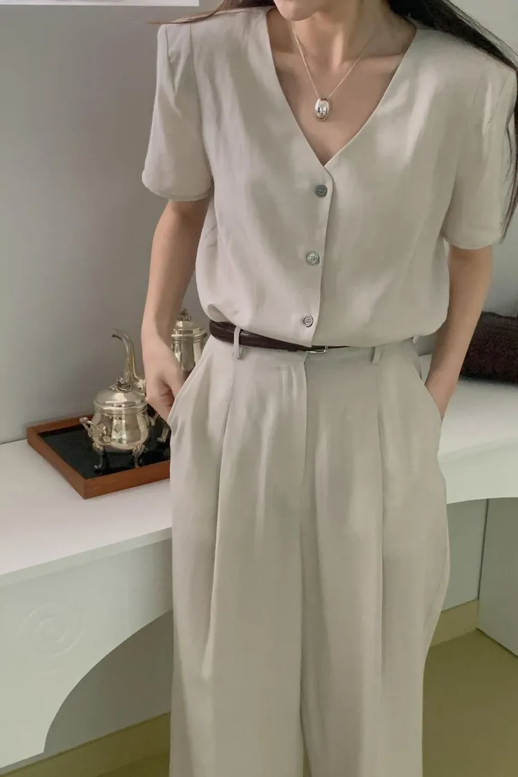 V領襯衫外套(聚酯61亞麻23人造絲16)
