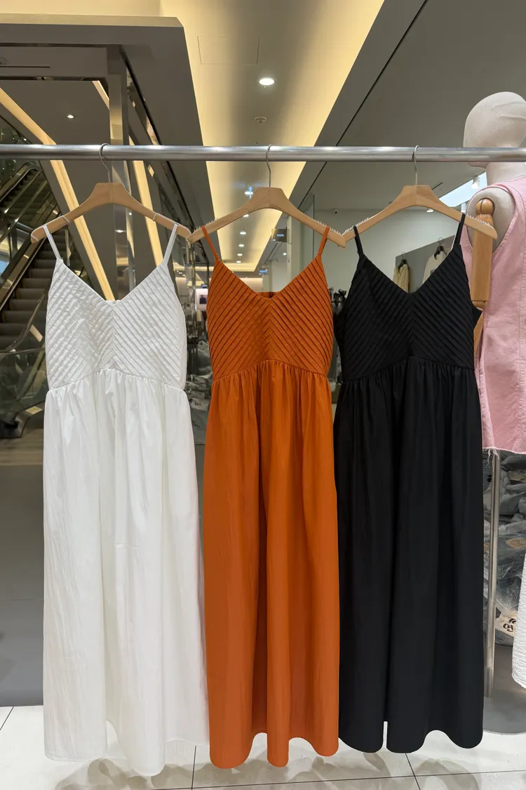 V領壓摺吊帶洋裝