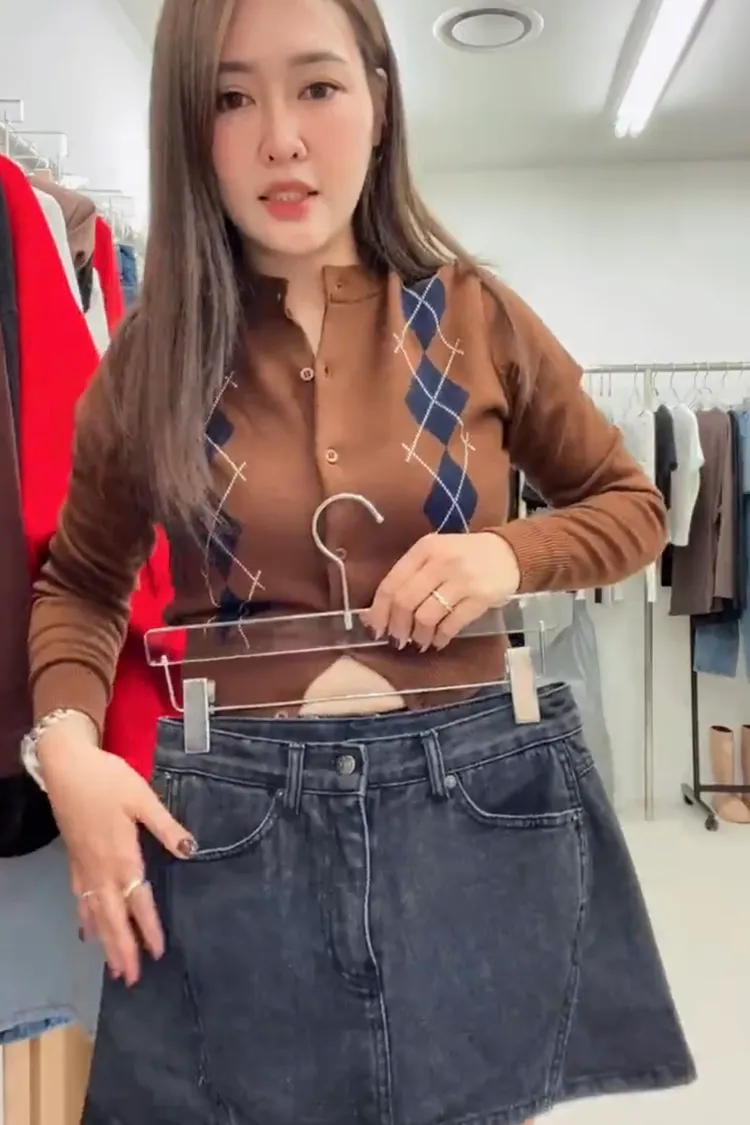切線短牛仔裙(炭灰色顯瘦款)