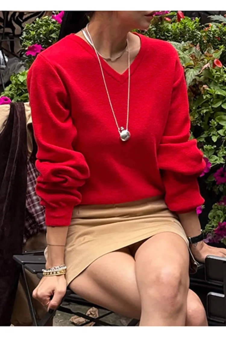 羊毛10%V領針織上衣